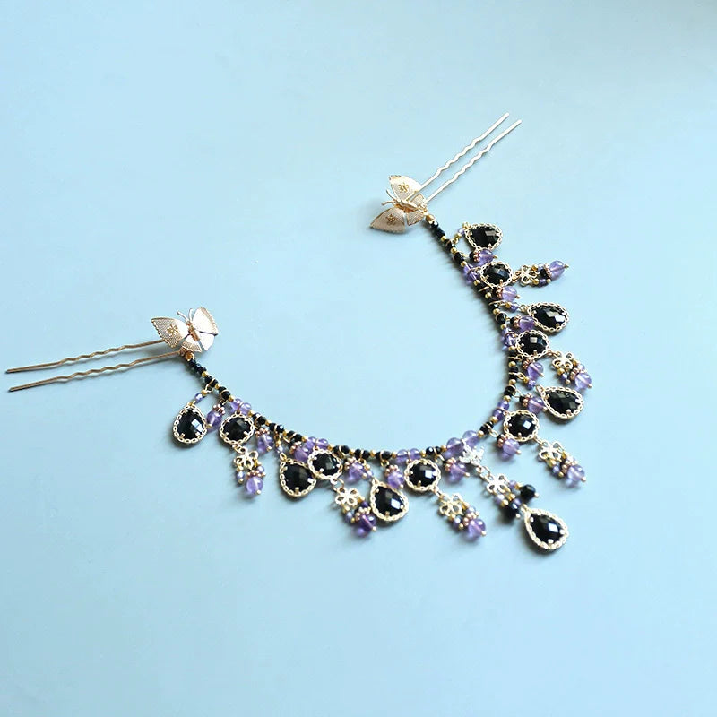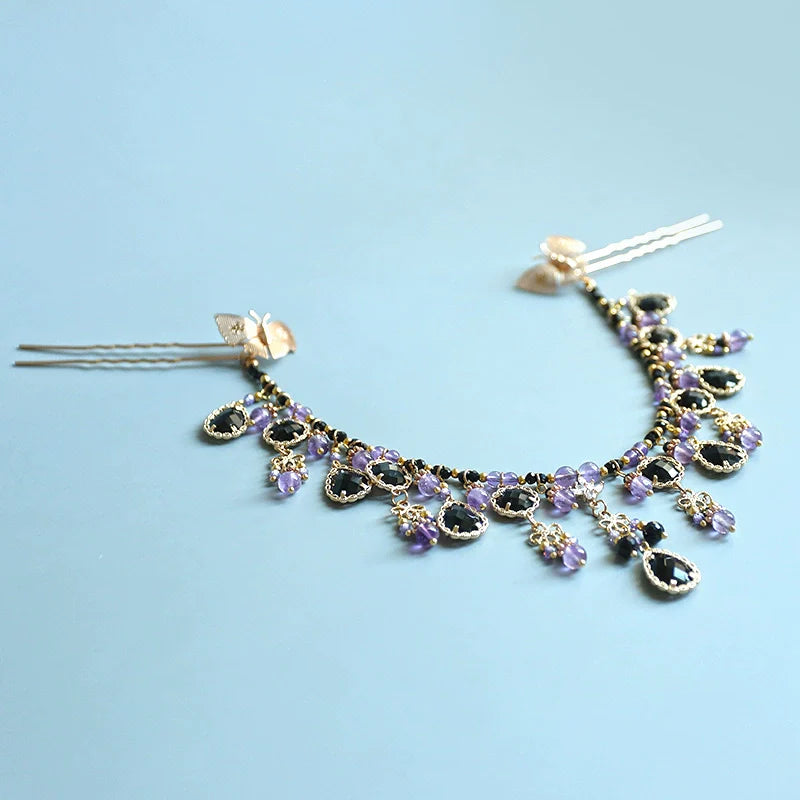 Hanfu hair accessories can vary widely in style, material, and design, but they all serve the purpose of enhancing the wearer's appearance and adding an extra touch of elegance to their hair. Some notable hair accessories commonly associated with Hanfu are hairpins (发簪, fāzān), hair combs (发篦, fābì), tassels (流苏, liúsū), hair ornaments (发髻, fājì), hairbands and headpieces (发饰, fāshì).