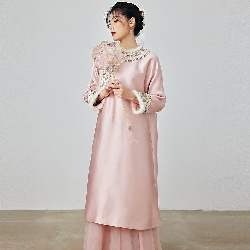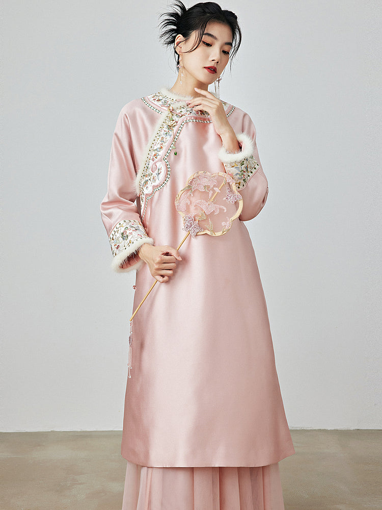 Frost Moon - Padded Cheongsam Dress for Autumn and Winter