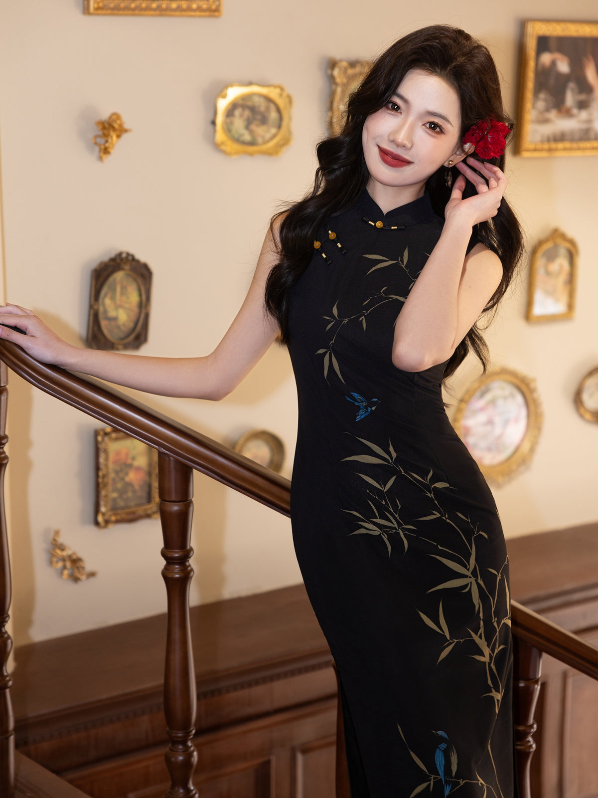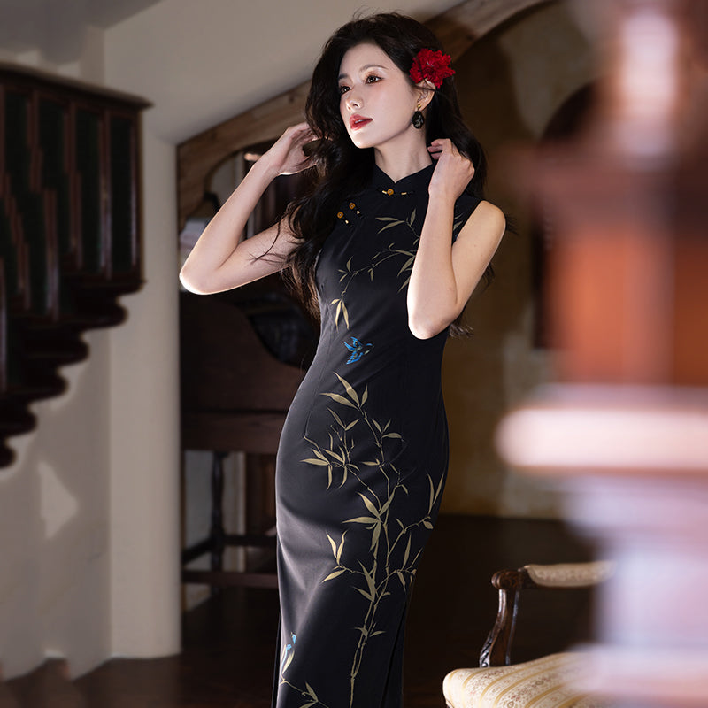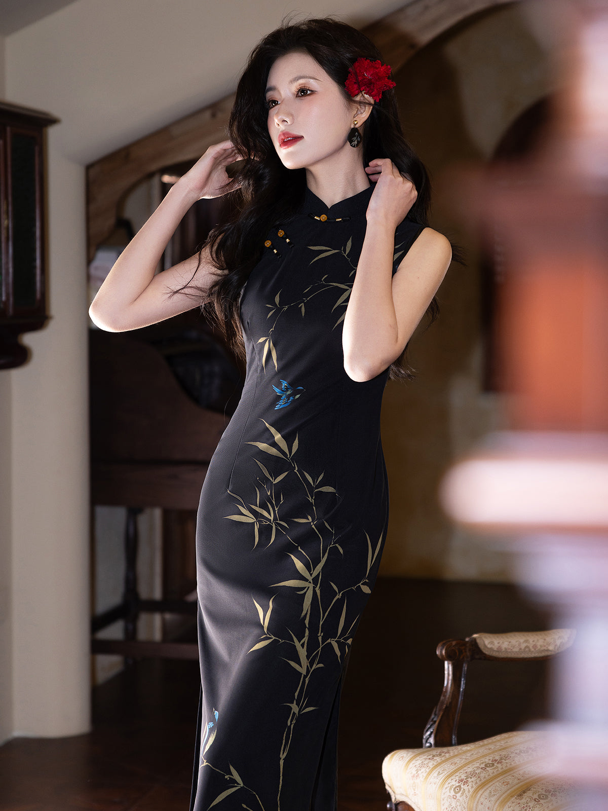 Golden Bamboo - Sleeveless Midi Cheongsam Dress