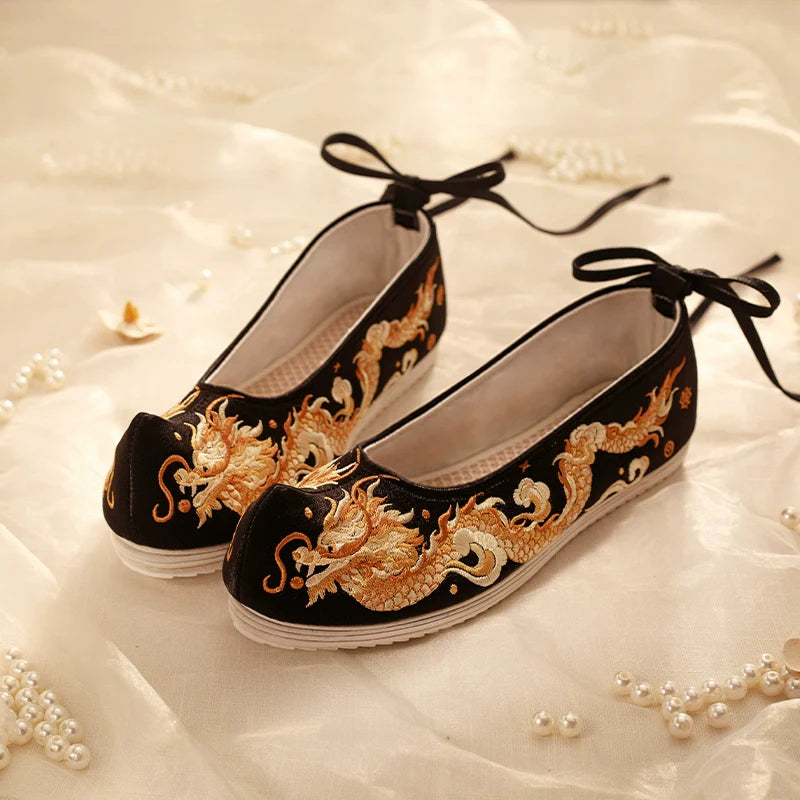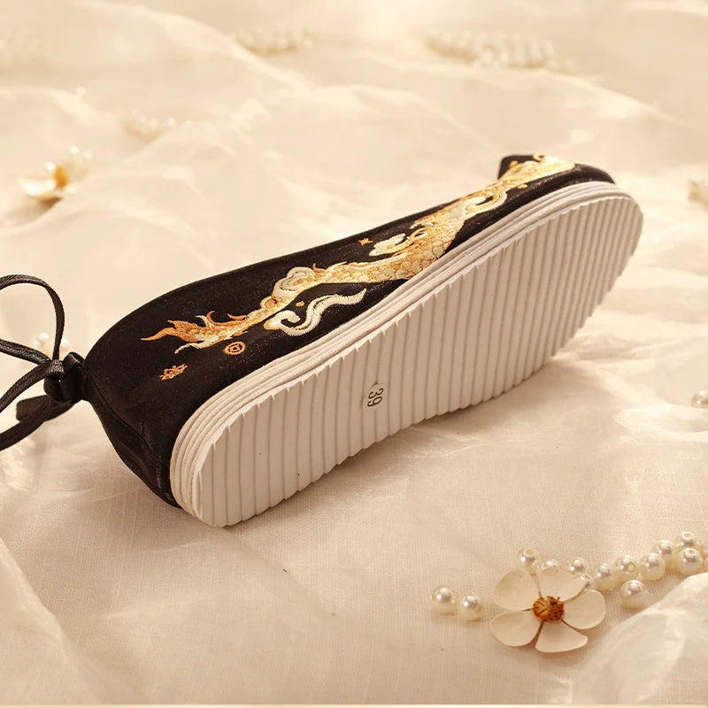 Golden Dragon – Embroidered Chinese Hanfu Shoes for Men and Women