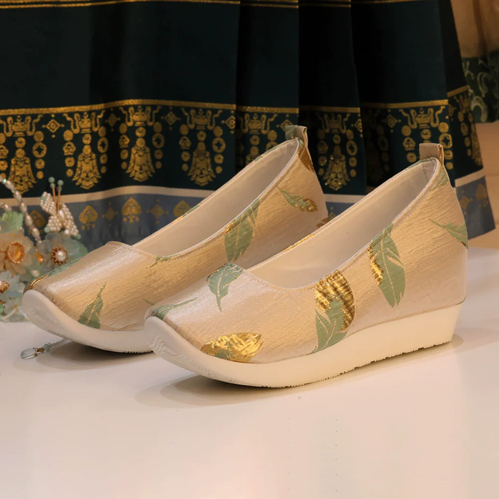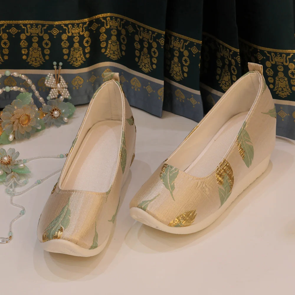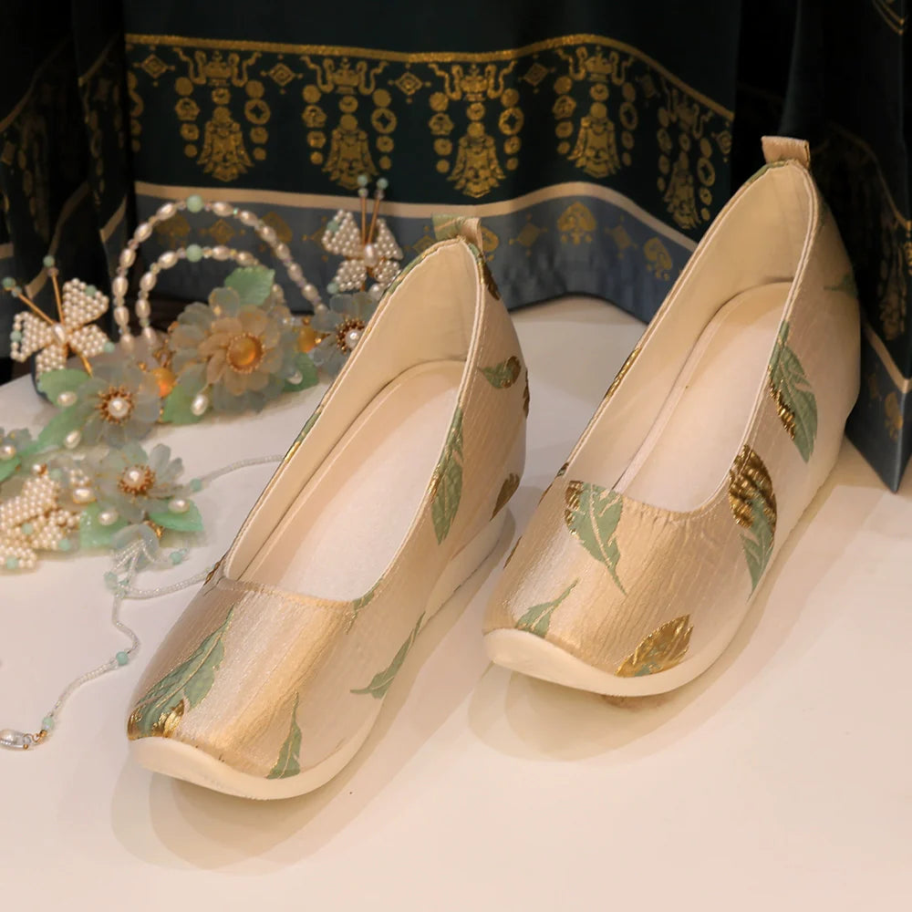 Golden Jade Leaf - Traditional Satin Shoes for Hanfu