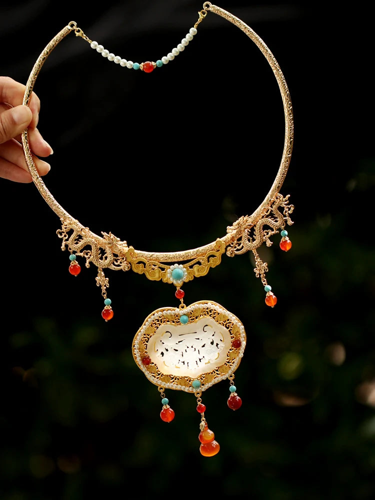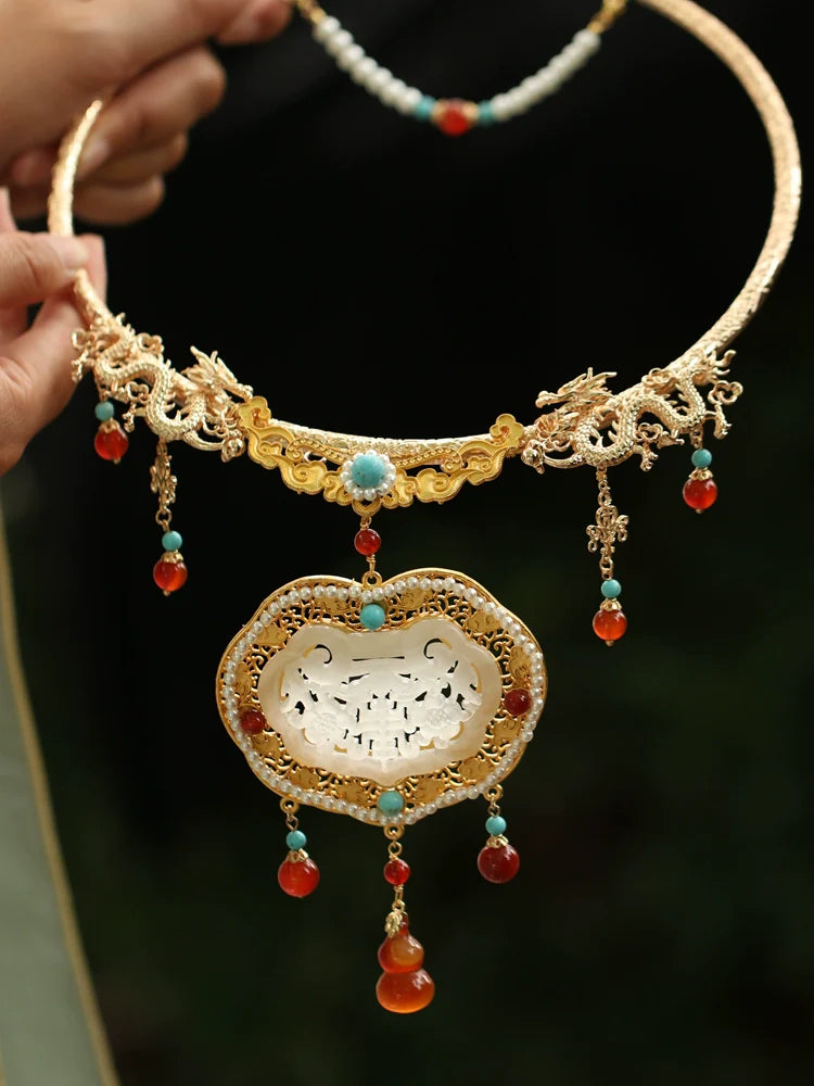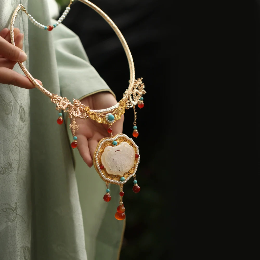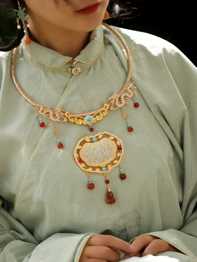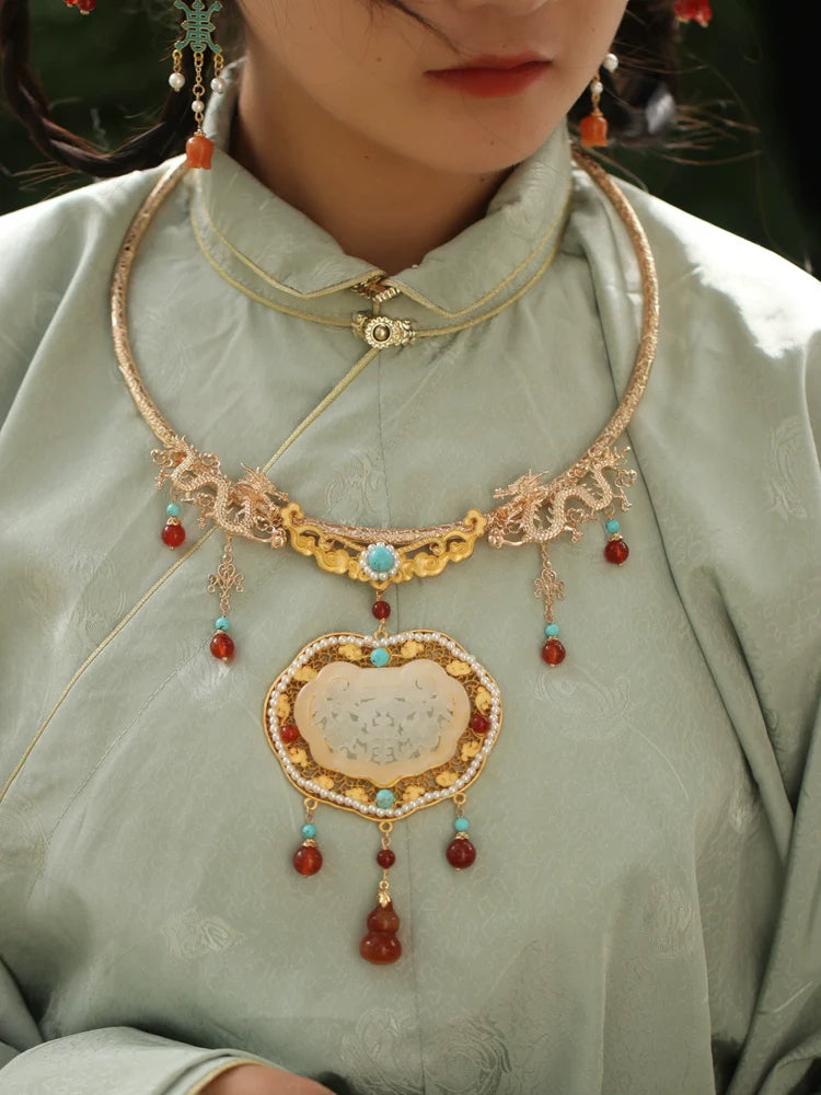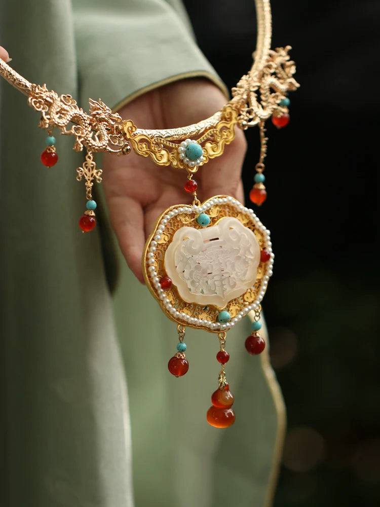 Traditional and modern Chinese-style accessories and costume jewelry, including necklaces, yingluo, and bracelets, perfect for pairing with Hanfu, Cheongsam, and Qipao.
