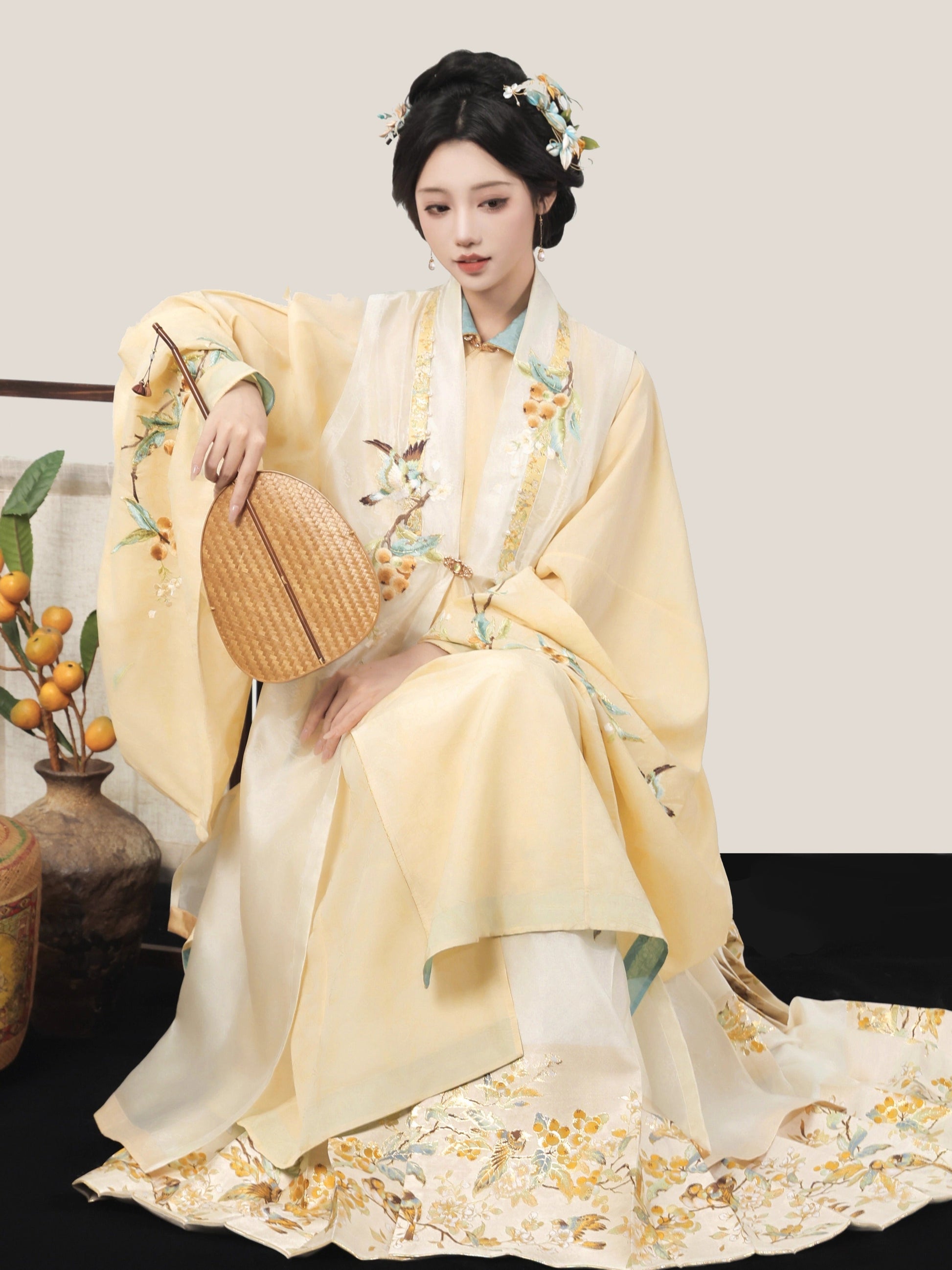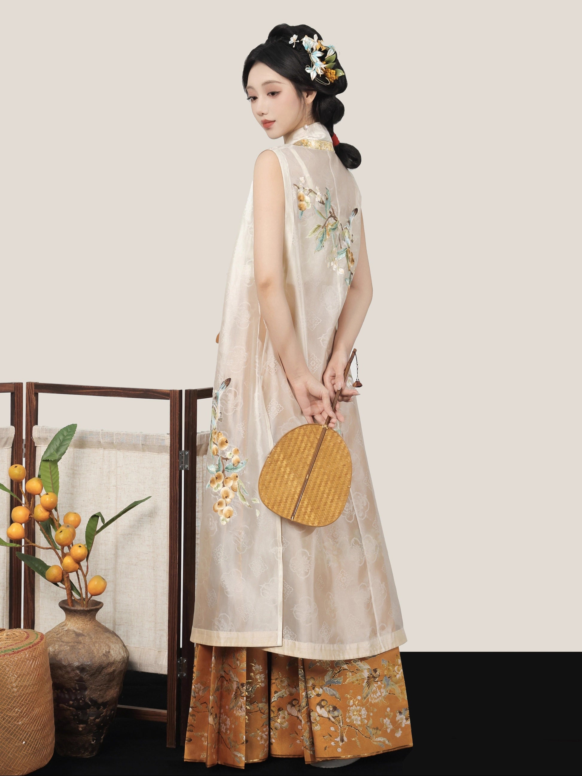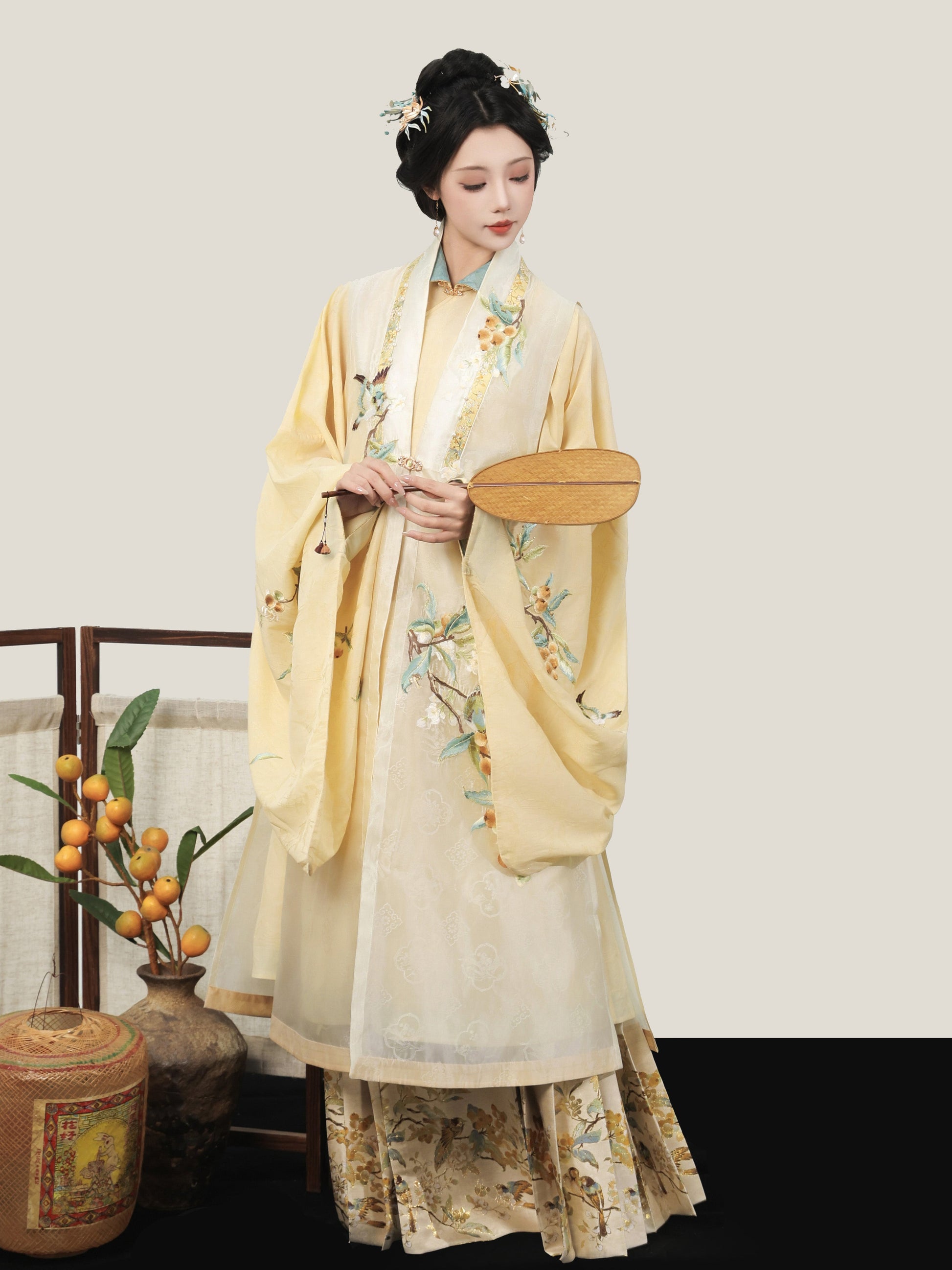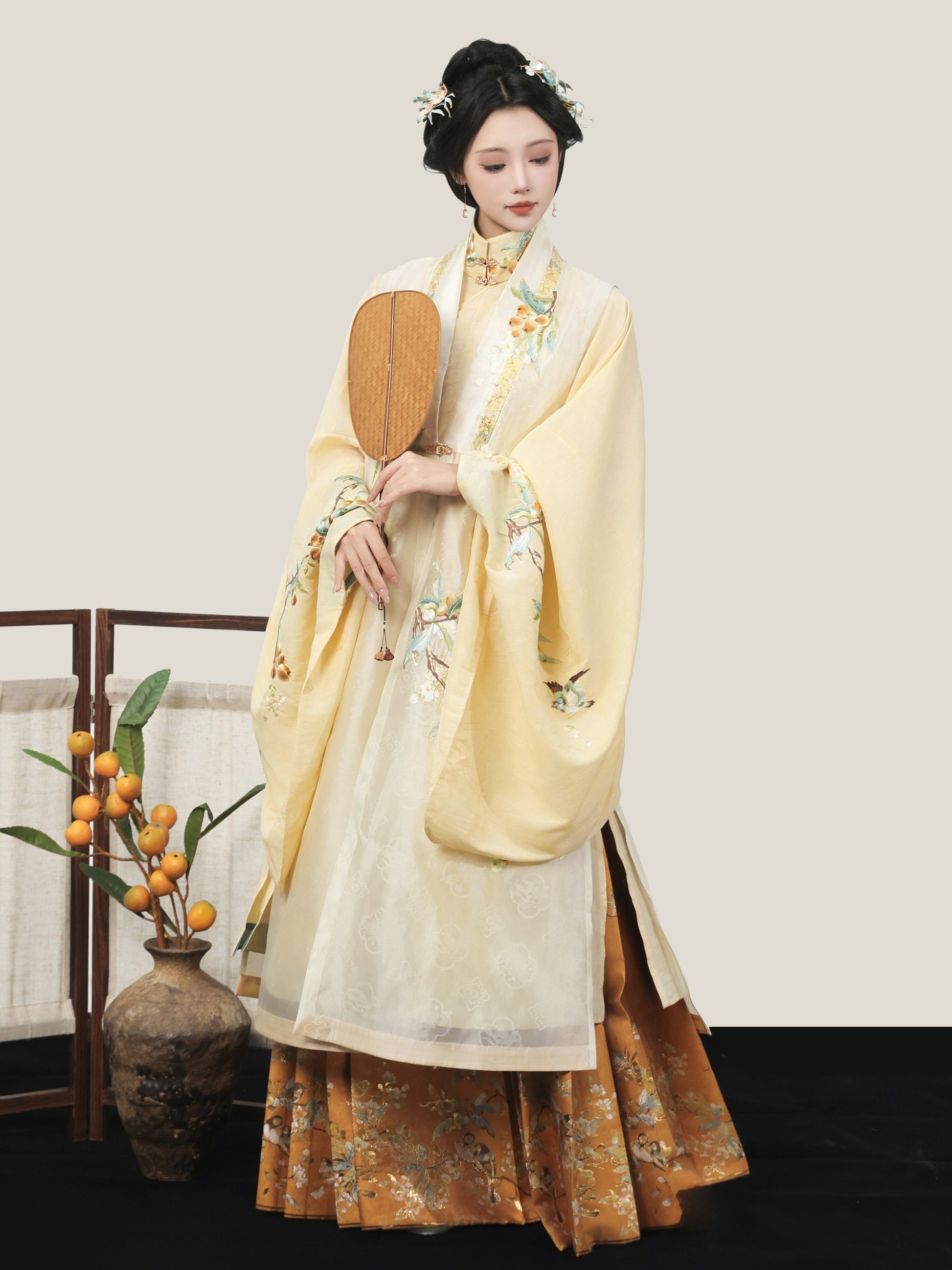 Golden Sparrow 雀金啼 - Jacquard Bijia & Mamianqun Ming Dynasty Hanfu Set (Preorder)