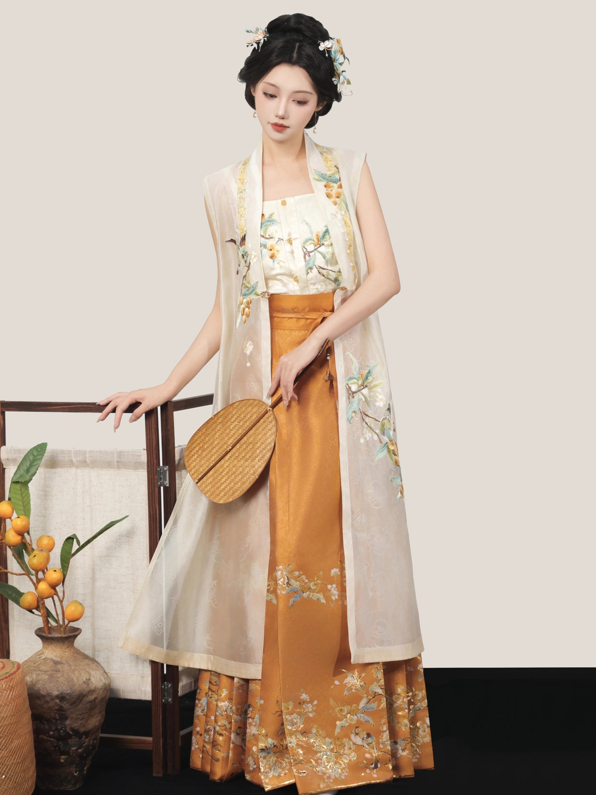 Shop Ming Dynasty women’s fashion, featuring structured Mamian skirts, embroidered cloud shoulders, and flowing robes. These historical Chinese garments are perfect for cultural events, festivals, performances, and even wedding or graduation ceremonies.