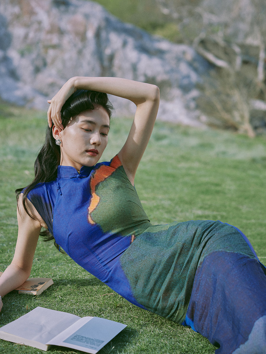 Gradual Spring 渐青 - Spring and Summer Short Sleeve Hong Kong-Style Ramie Cheongsam (Preorder)