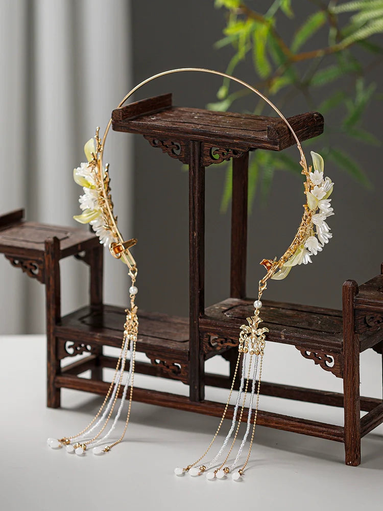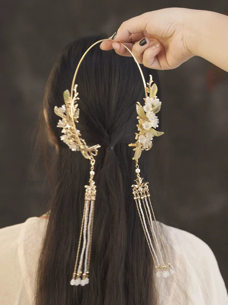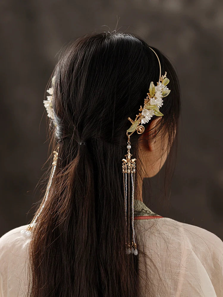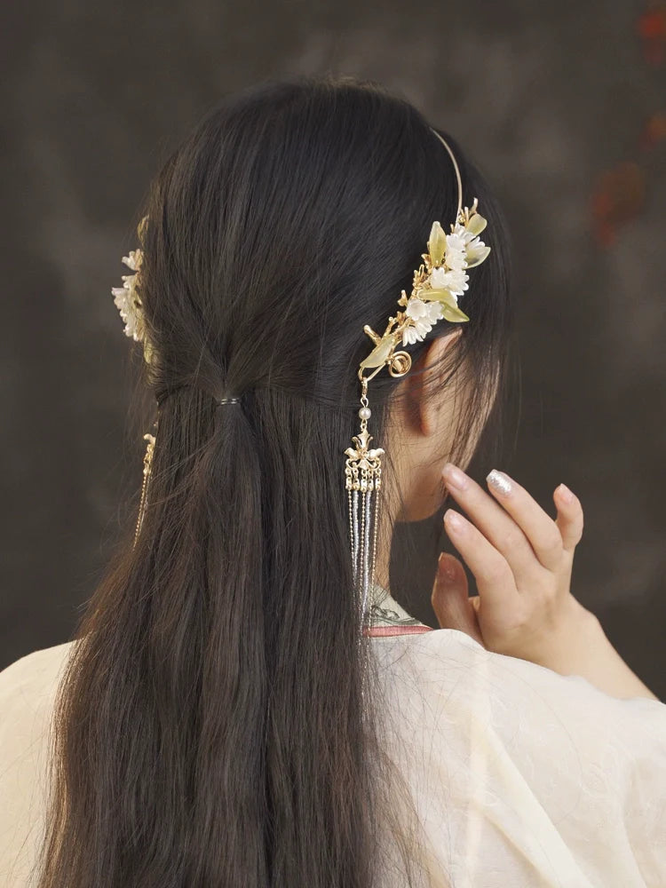 Hanfu hair accessories can vary widely in style, material, and design, but they all serve the purpose of enhancing the wearer's appearance and adding an extra touch of elegance to their hair. Some notable hair accessories commonly associated with Hanfu are hairpins (发簪, fāzān), hair combs (发篦, fābì), tassels (流苏, liúsū), hair ornaments (发髻, fājì), hairbands and headpieces (发饰, fāshì).