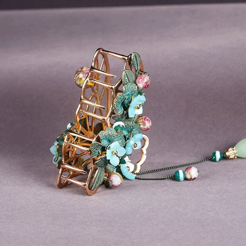 Hanfu hair accessories can vary widely in style, material, and design, but they all serve the purpose of enhancing the wearer's appearance and adding an extra touch of elegance to their hair. Some notable hair accessories commonly associated with Hanfu are hairpins (发簪, fāzān), hair combs (发篦, fābì), tassels (流苏, liúsū), hair ornaments (发髻, fājì), hairbands and headpieces (发饰, fāshì).
