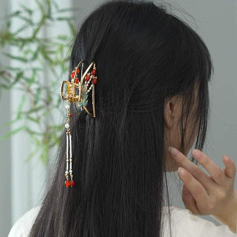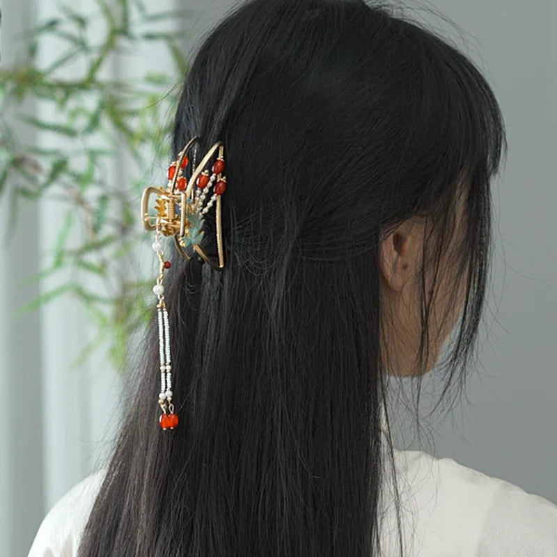 Hanfu hair accessories can vary widely in style, material, and design, but they all serve the purpose of enhancing the wearer's appearance and adding an extra touch of elegance to their hair. Some notable hair accessories commonly associated with Hanfu are hairpins (发簪, fāzān), hair combs (发篦, fābì), tassels (流苏, liúsū), hair ornaments (发髻, fājì), hairbands and headpieces (发饰, fāshì).