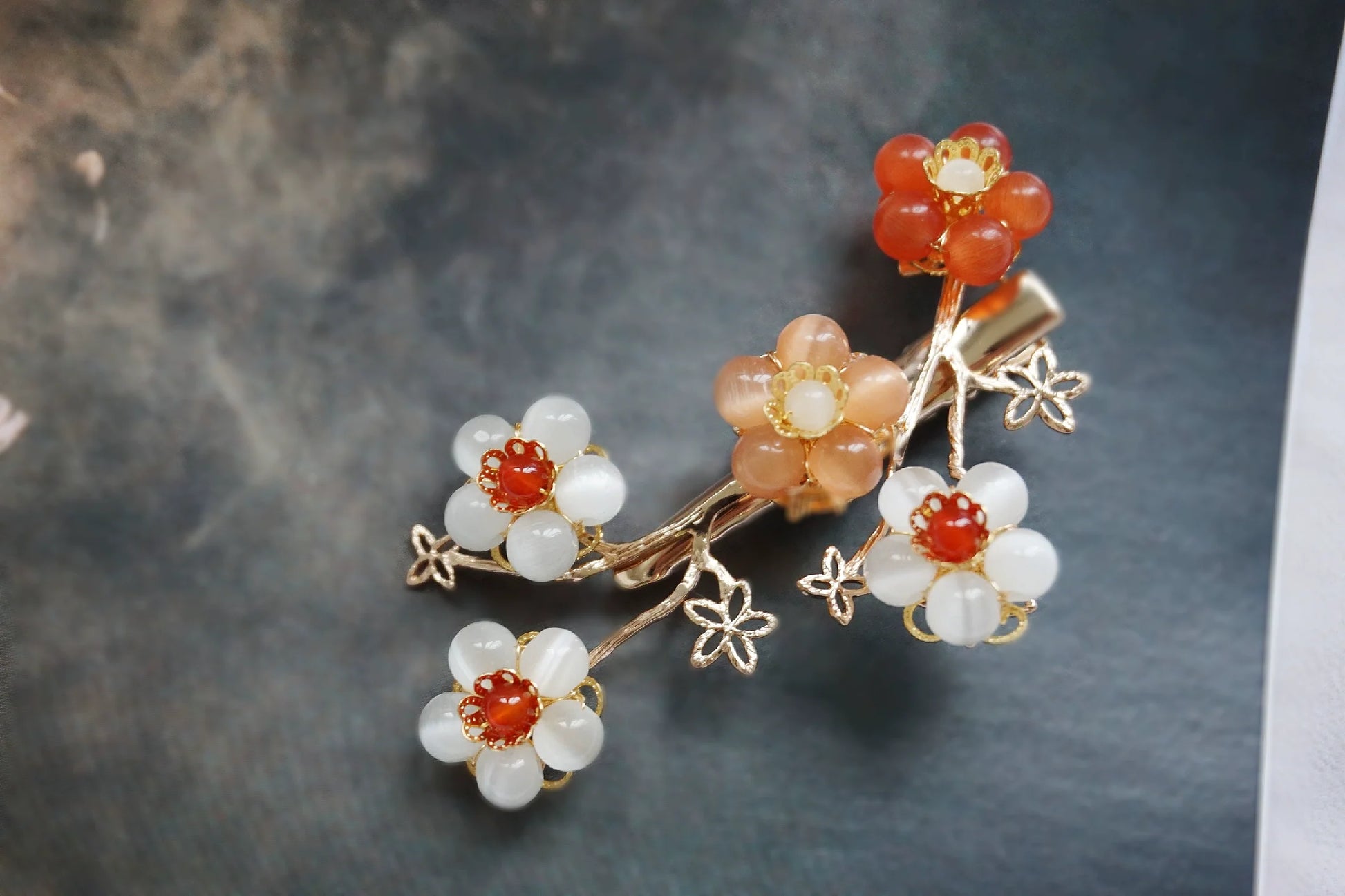 Hanfu hair accessories can vary widely in style, material, and design, but they all serve the purpose of enhancing the wearer's appearance and adding an extra touch of elegance to their hair. Some notable hair accessories commonly associated with Hanfu are hairpins (发簪, fāzān), hair combs (发篦, fābì), tassels (流苏, liúsū), hair ornaments (发髻, fājì), hairbands and headpieces (发饰, fāshì).