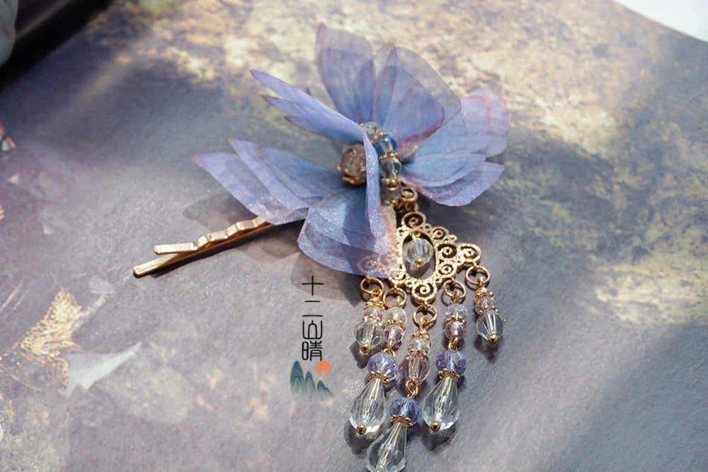 Hanfu hair accessories can vary widely in style, material, and design, but they all serve the purpose of enhancing the wearer's appearance and adding an extra touch of elegance to their hair. Some notable hair accessories commonly associated with Hanfu are hairpins (发簪, fāzān), hair combs (发篦, fābì), tassels (流苏, liúsū), hair ornaments (发髻, fājì), hairbands and headpieces (发饰, fāshì).