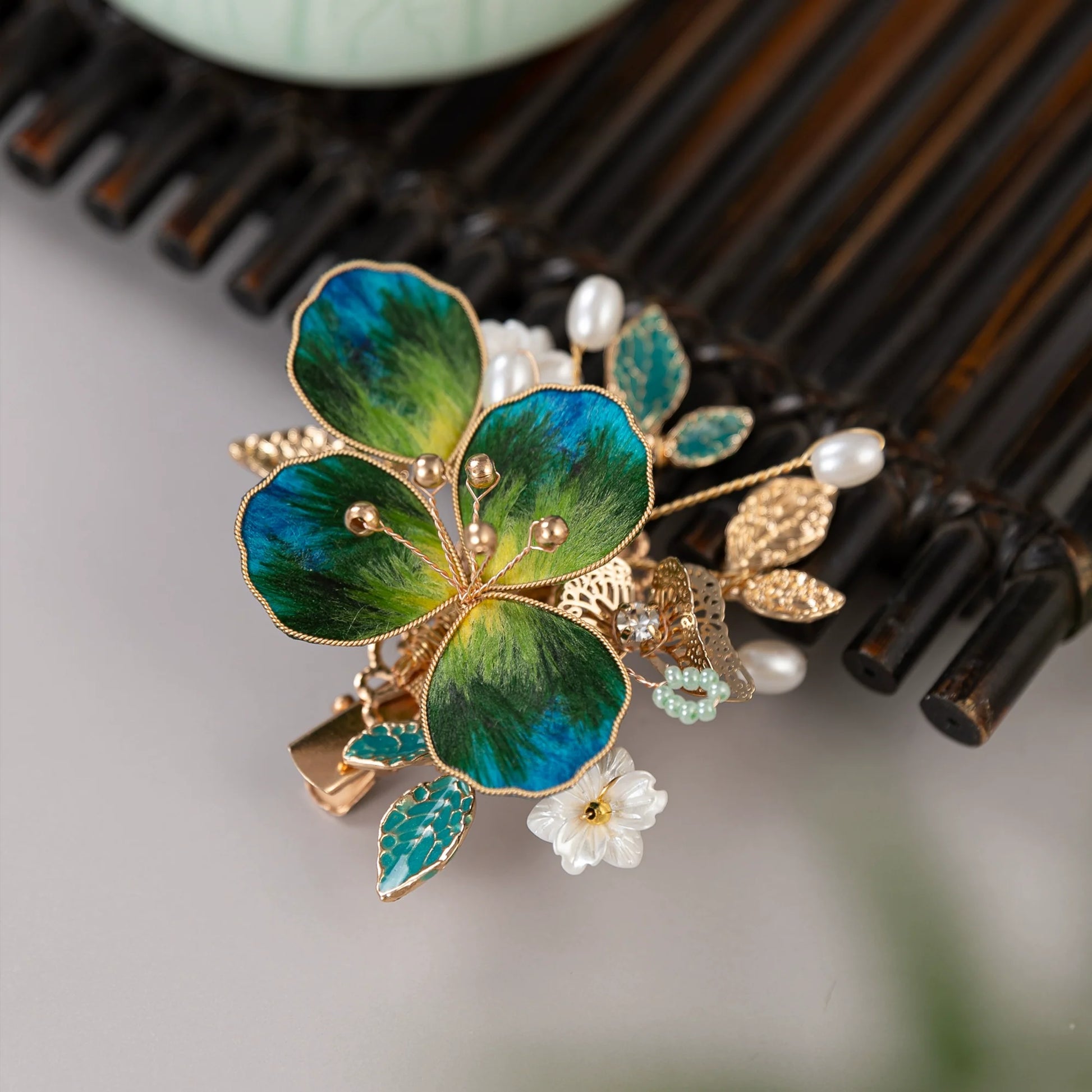 Hanfu hair accessories can vary widely in style, material, and design, but they all serve the purpose of enhancing the wearer's appearance and adding an extra touch of elegance to their hair. Some notable hair accessories commonly associated with Hanfu are hairpins (发簪, fāzān), hair combs (发篦, fābì), tassels (流苏, liúsū), hair ornaments (发髻, fājì), hairbands and headpieces (发饰, fāshì).