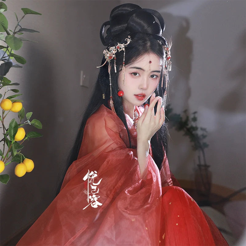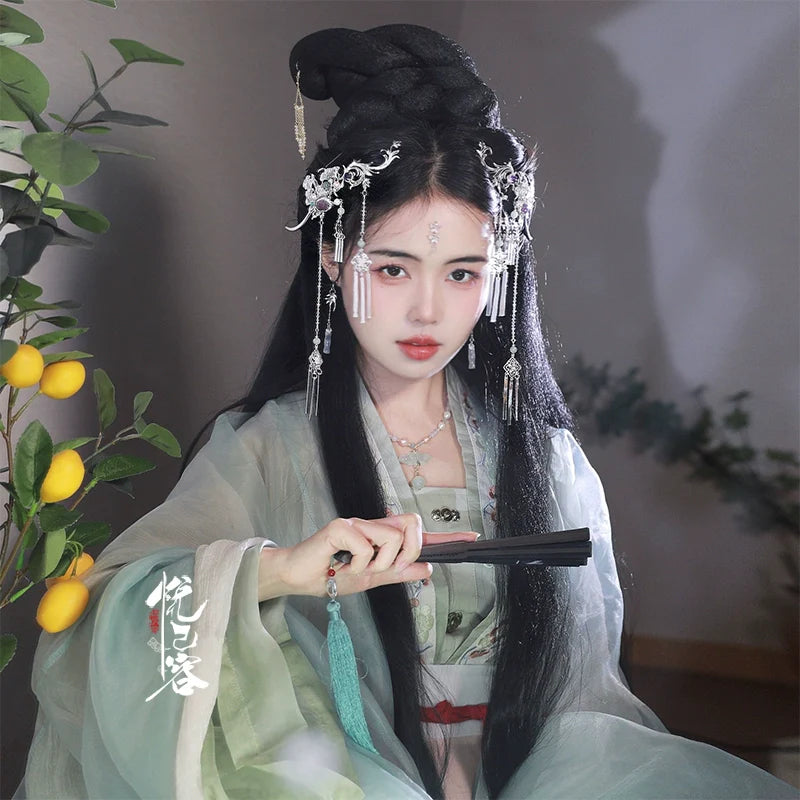 In traditional Hanfu culture, the hairstyle and the accompanying accessories are considered important elements that complete the overall look and reflect the wearer's social status, fashion sense, and personal style.