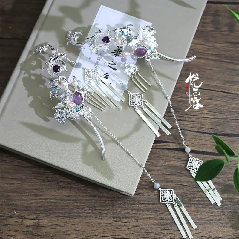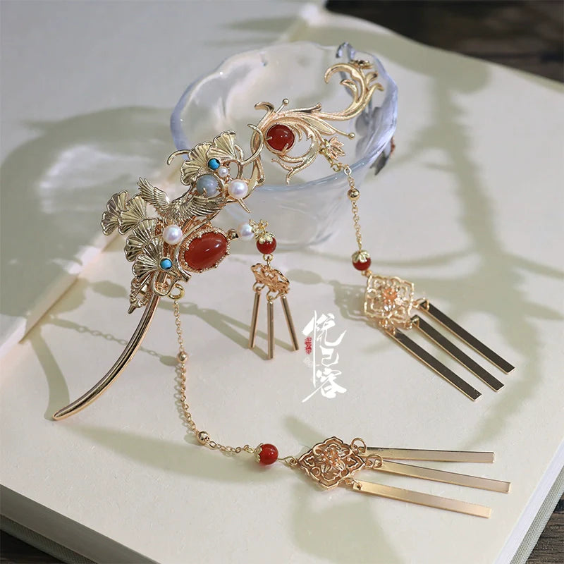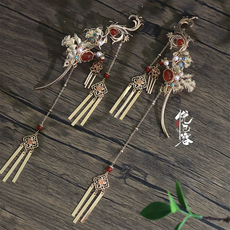 Hanfu hair accessories can vary widely in style, material, and design, but they all serve the purpose of enhancing the wearer's appearance and adding an extra touch of elegance to their hair. Some notable hair accessories commonly associated with Hanfu are hairpins (发簪, fāzān), hair combs (发篦, fābì), tassels (流苏, liúsū), hair ornaments (发髻, fājì), hairbands and headpieces (发饰, fāshì).