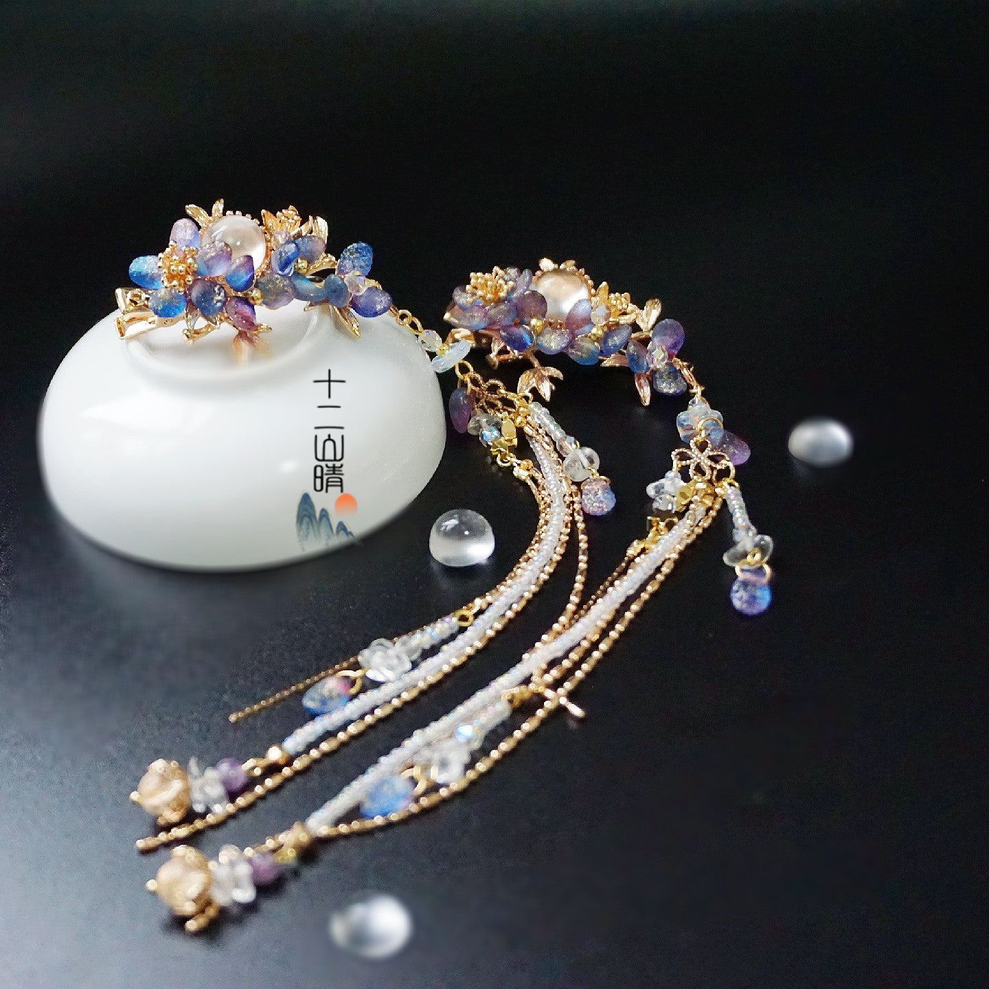 Hanfu hair accessories can vary widely in style, material, and design, but they all serve the purpose of enhancing the wearer's appearance and adding an extra touch of elegance to their hair. Some notable hair accessories commonly associated with Hanfu are hairpins (发簪, fāzān), hair combs (发篦, fābì), tassels (流苏, liúsū), hair ornaments (发髻, fājì), hairbands and headpieces (发饰, fāshì).
