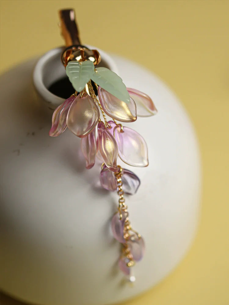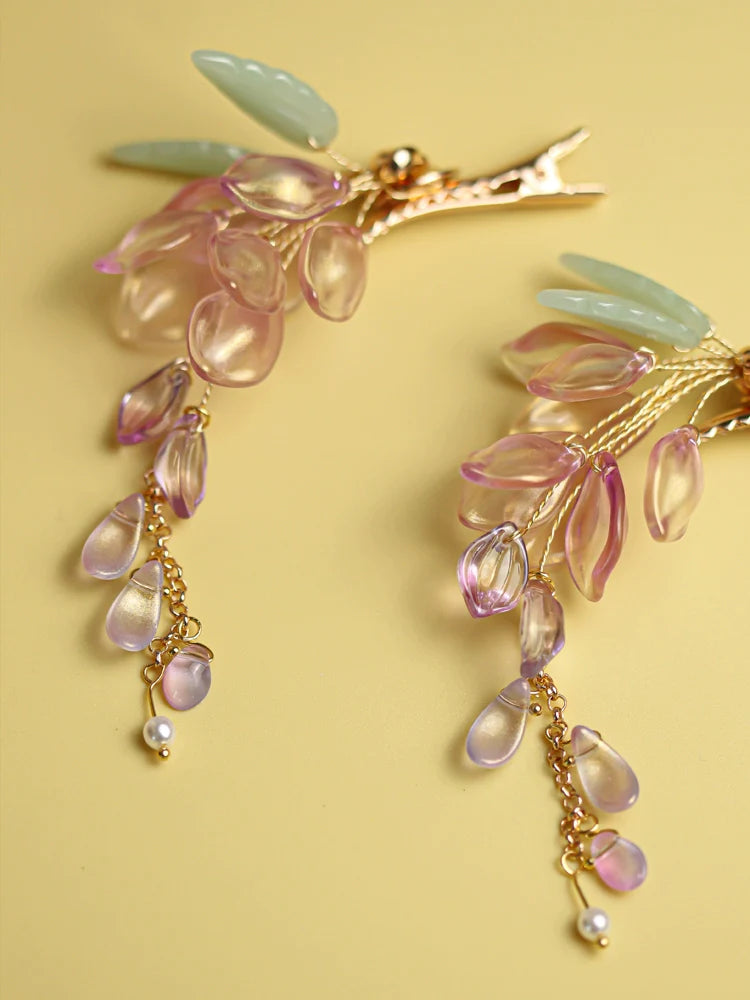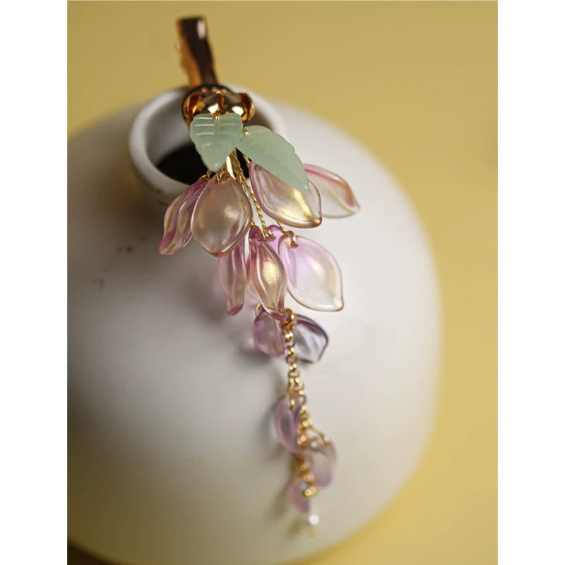 Hanfu hair accessories can vary widely in style, material, and design, but they all serve the purpose of enhancing the wearer's appearance and adding an extra touch of elegance to their hair. Some notable hair accessories commonly associated with Hanfu are hairpins (发簪, fāzān), hair combs (发篦, fābì), tassels (流苏, liúsū), hair ornaments (发髻, fājì), hairbands and headpieces (发饰, fāshì).