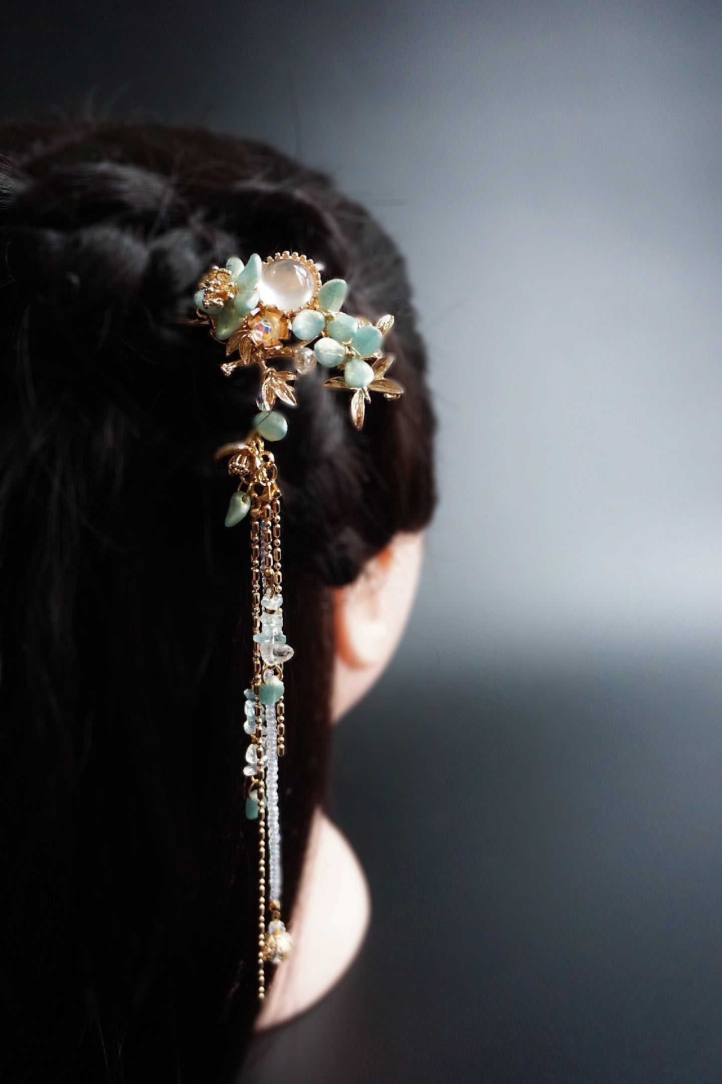 In traditional Hanfu culture, the hairstyle and the accompanying accessories are considered important elements that complete the overall look and reflect the wearer's social status, fashion sense, and personal style.