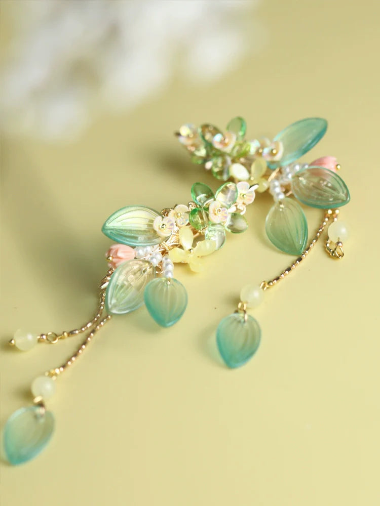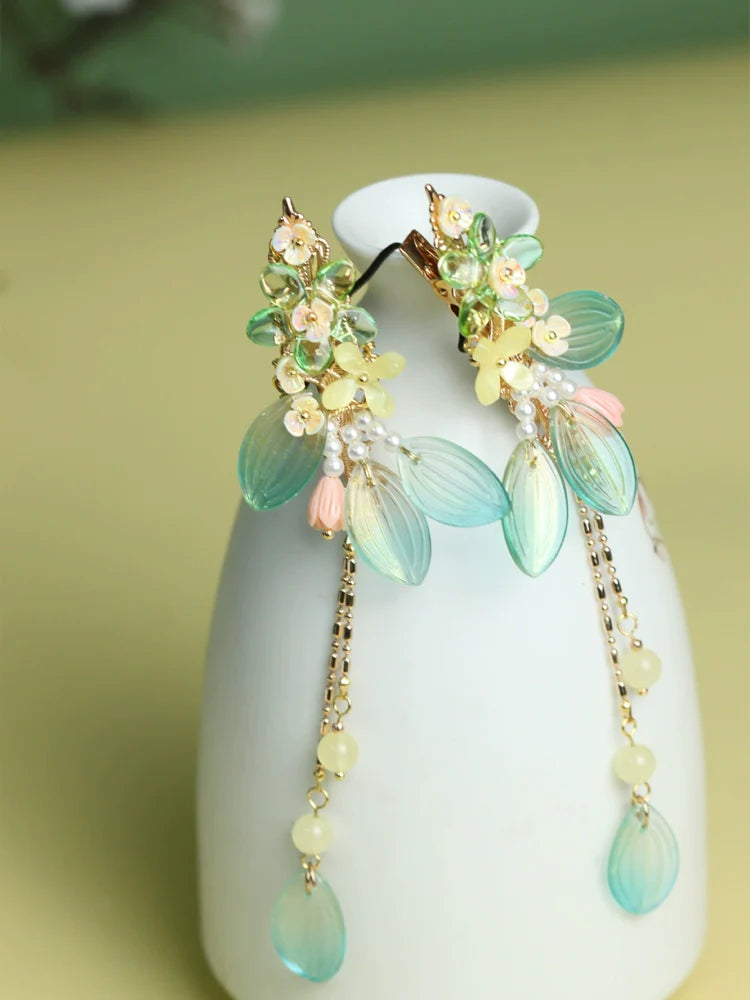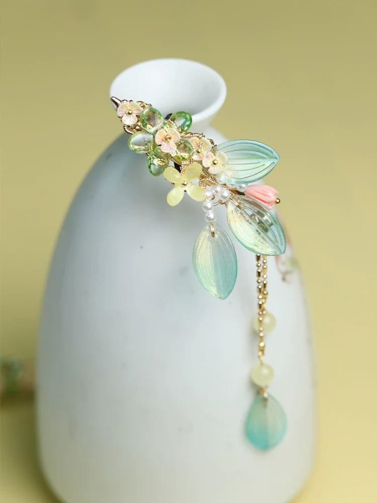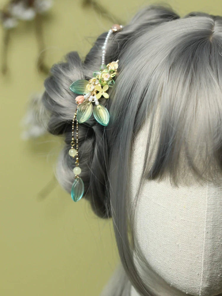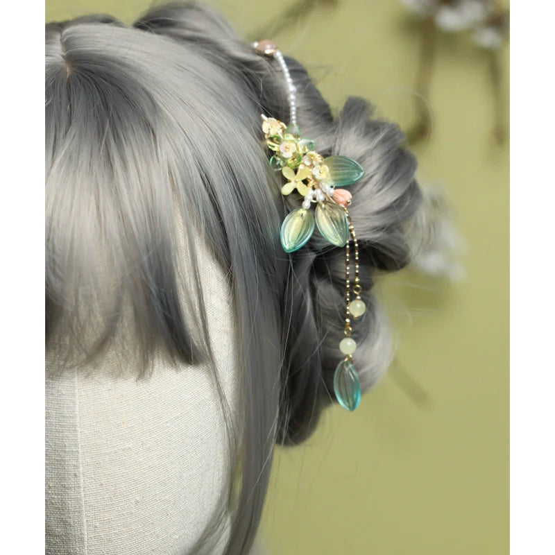Hanfu hair accessories can vary widely in style, material, and design, but they all serve the purpose of enhancing the wearer's appearance and adding an extra touch of elegance to their hair. Some notable hair accessories commonly associated with Hanfu are hairpins (发簪, fāzān), hair combs (发篦, fābì), tassels (流苏, liúsū), hair ornaments (发髻, fājì), hairbands and headpieces (发饰, fāshì).