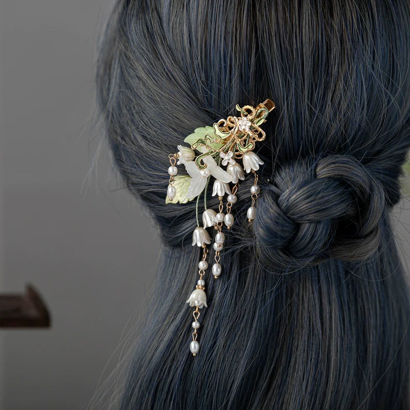 Hanfu hair accessories can vary widely in style, material, and design, but they all serve the purpose of enhancing the wearer's appearance and adding an extra touch of elegance to their hair. Some notable hair accessories commonly associated with Hanfu are hairpins (发簪, fāzān), hair combs (发篦, fābì), tassels (流苏, liúsū), hair ornaments (发髻, fājì), hairbands and headpieces (发饰, fāshì).