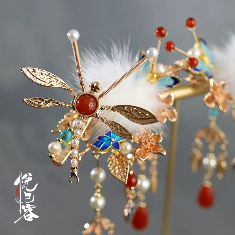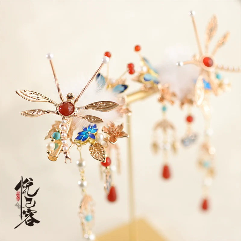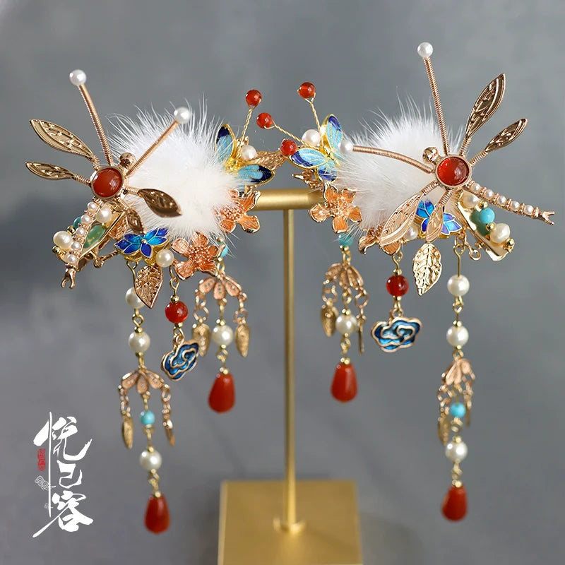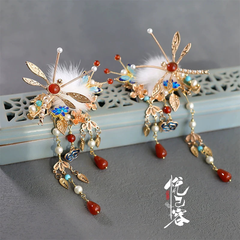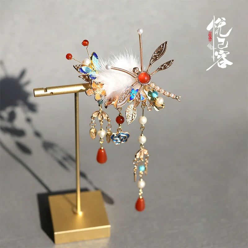 Hanfu hair accessories can vary widely in style, material, and design, but they all serve the purpose of enhancing the wearer's appearance and adding an extra touch of elegance to their hair. Some notable hair accessories commonly associated with Hanfu are hairpins (发簪, fāzān), hair combs (发篦, fābì), tassels (流苏, liúsū), hair ornaments (发髻, fājì), hairbands and headpieces (发饰, fāshì).