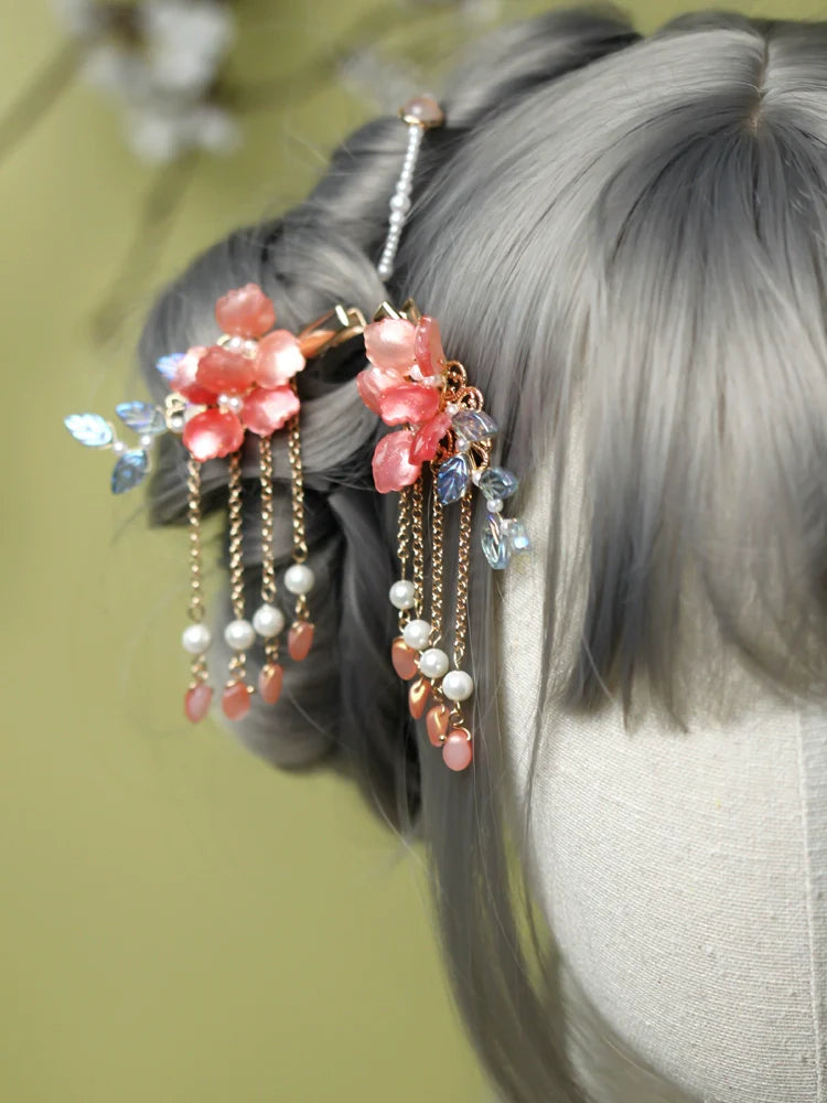 Hanfu hair accessories can vary widely in style, material, and design, but they all serve the purpose of enhancing the wearer's appearance and adding an extra touch of elegance to their hair. Some notable hair accessories commonly associated with Hanfu are hairpins (发簪, fāzān), hair combs (发篦, fābì), tassels (流苏, liúsū), hair ornaments (发髻, fājì), hairbands and headpieces (发饰, fāshì).