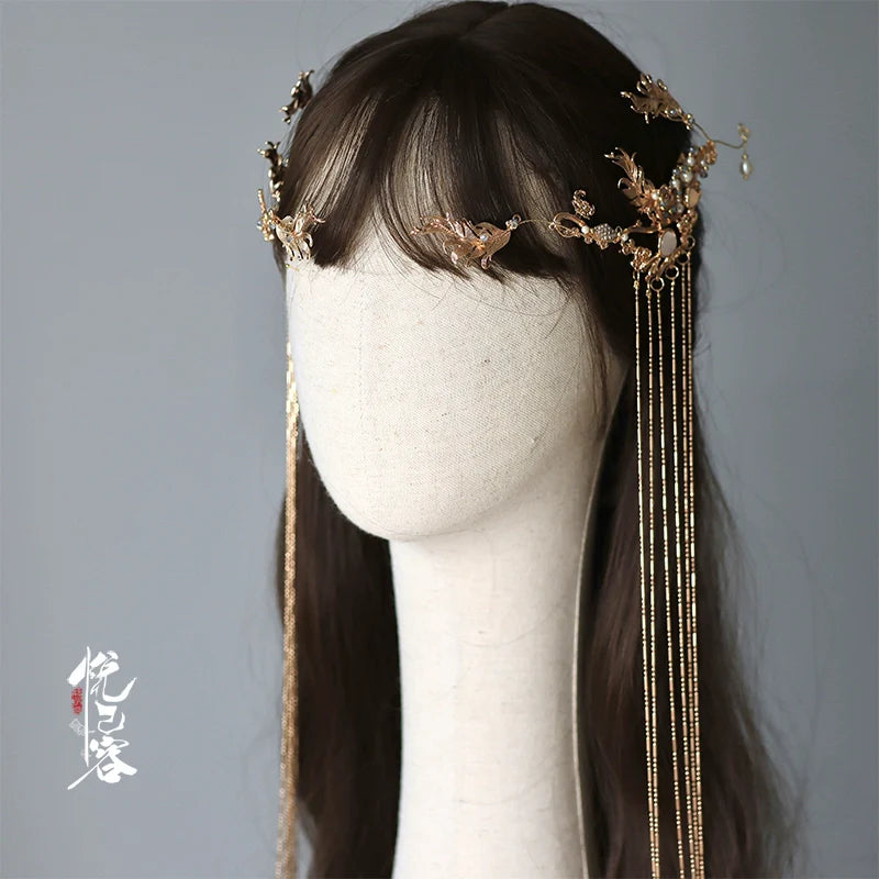 Hanfu hair accessories can vary widely in style, material, and design, but they all serve the purpose of enhancing the wearer's appearance and adding an extra touch of elegance to their hair. Some notable hair accessories commonly associated with Hanfu are hairpins (发簪, fāzān), hair combs (发篦, fābì), tassels (流苏, liúsū), hair ornaments (发髻, fājì), hairbands and headpieces (发饰, fāshì).