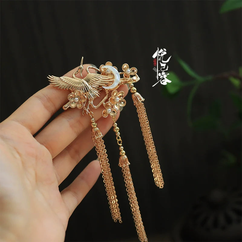 Hanfu hair accessories can vary widely in style, material, and design, but they all serve the purpose of enhancing the wearer's appearance and adding an extra touch of elegance to their hair. Some notable hair accessories commonly associated with Hanfu are hairpins (发簪, fāzān), hair combs (发篦, fābì), tassels (流苏, liúsū), hair ornaments (发髻, fājì), hairbands and headpieces (发饰, fāshì).