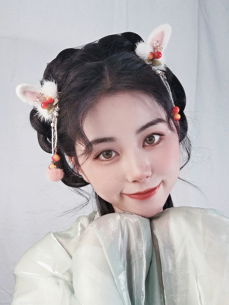 In traditional Hanfu culture, the hairstyle and the accompanying accessories are considered important elements that complete the overall look and reflect the wearer's social status, fashion sense, and personal style.