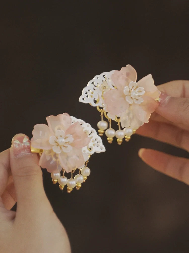 Hanfu hair accessories can vary widely in style, material, and design, but they all serve the purpose of enhancing the wearer's appearance and adding an extra touch of elegance to their hair. Some notable hair accessories commonly associated with Hanfu are hairpins (发簪, fāzān), hair combs (发篦, fābì), tassels (流苏, liúsū), hair ornaments (发髻, fājì), hairbands and headpieces (发饰, fāshì).