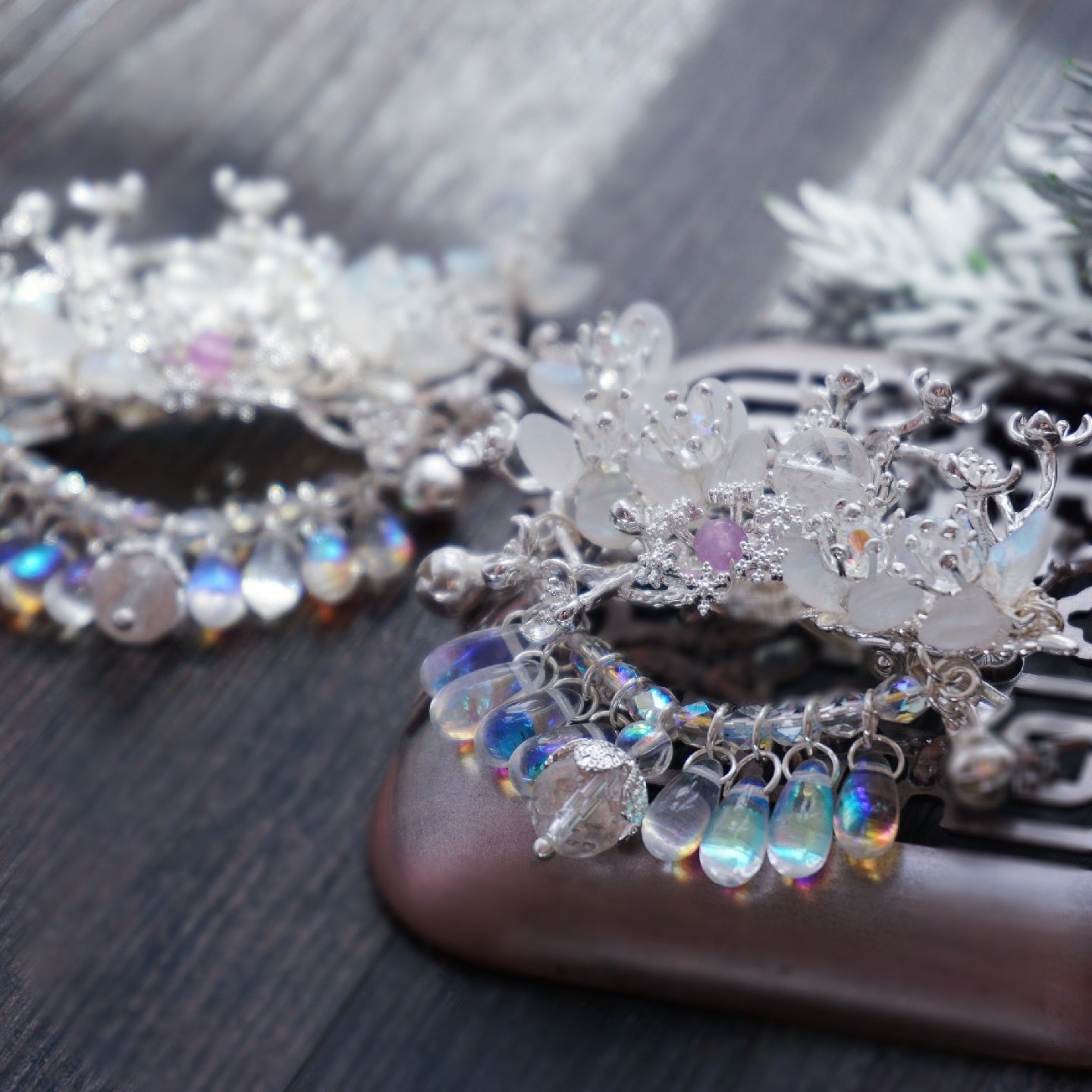 Hanfu hair accessories can vary widely in style, material, and design, but they all serve the purpose of enhancing the wearer's appearance and adding an extra touch of elegance to their hair. Some notable hair accessories commonly associated with Hanfu are hairpins (发簪, fāzān), hair combs (发篦, fābì), tassels (流苏, liúsū), hair ornaments (发髻, fājì), hairbands and headpieces (发饰, fāshì).