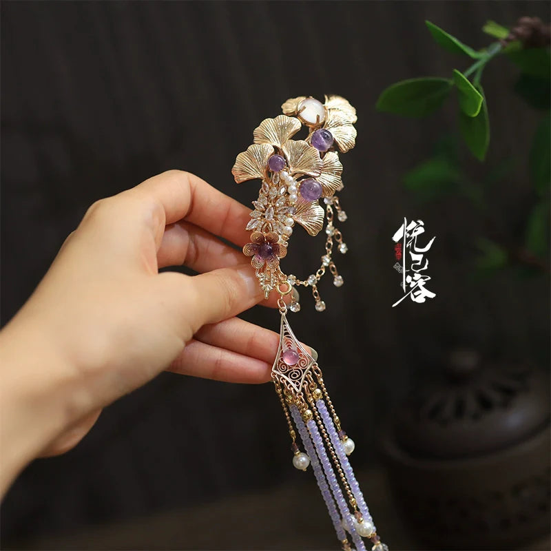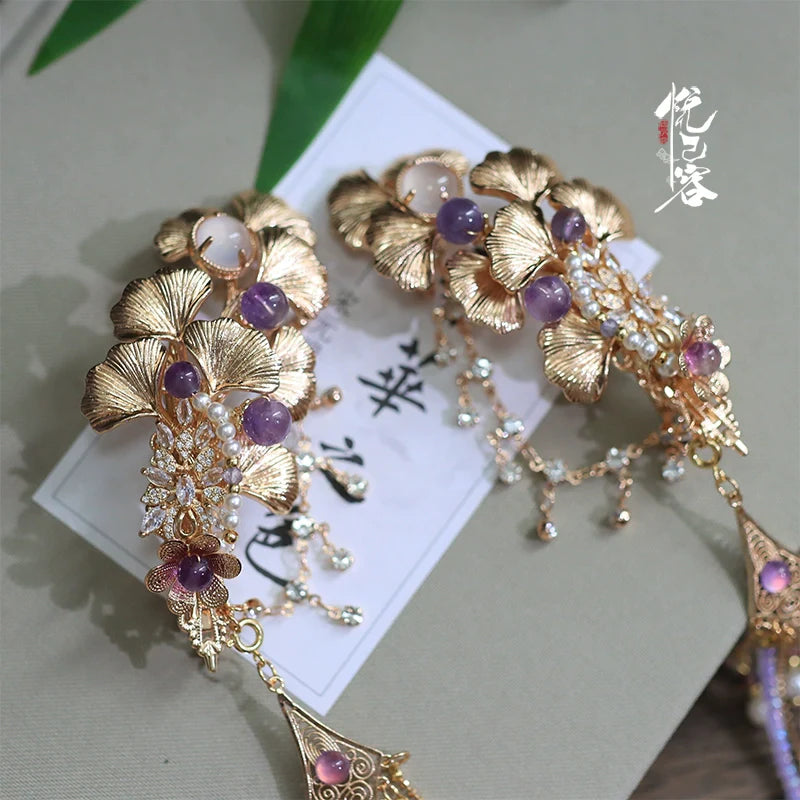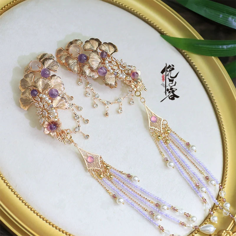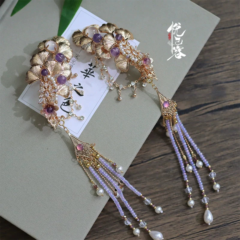 Hanfu hair accessories can vary widely in style, material, and design, but they all serve the purpose of enhancing the wearer's appearance and adding an extra touch of elegance to their hair. Some notable hair accessories commonly associated with Hanfu are hairpins (发簪, fāzān), hair combs (发篦, fābì), tassels (流苏, liúsū), hair ornaments (发髻, fājì), hairbands and headpieces (发饰, fāshì).