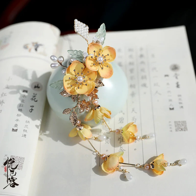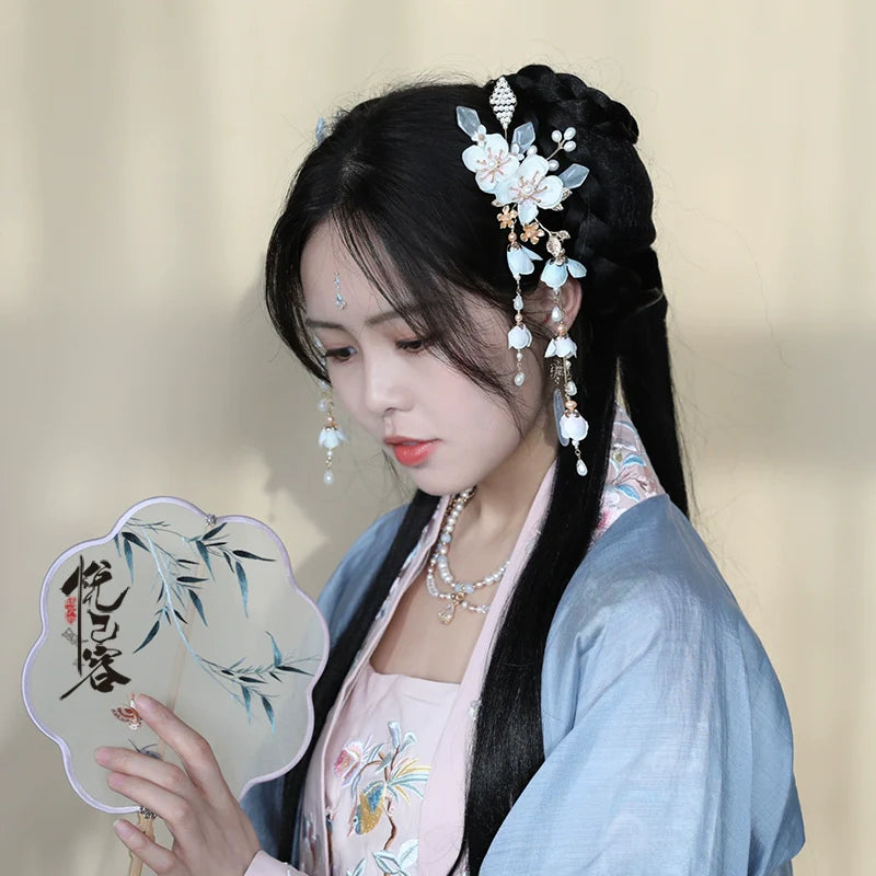 Hanfu hair accessories can vary widely in style, material, and design, but they all serve the purpose of enhancing the wearer's appearance and adding an extra touch of elegance to their hair. Some notable hair accessories commonly associated with Hanfu are hairpins (发簪, fāzān), hair combs (发篦, fābì), tassels (流苏, liúsū), hair ornaments (发髻, fājì), hairbands and headpieces (发饰, fāshì).