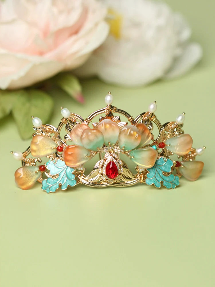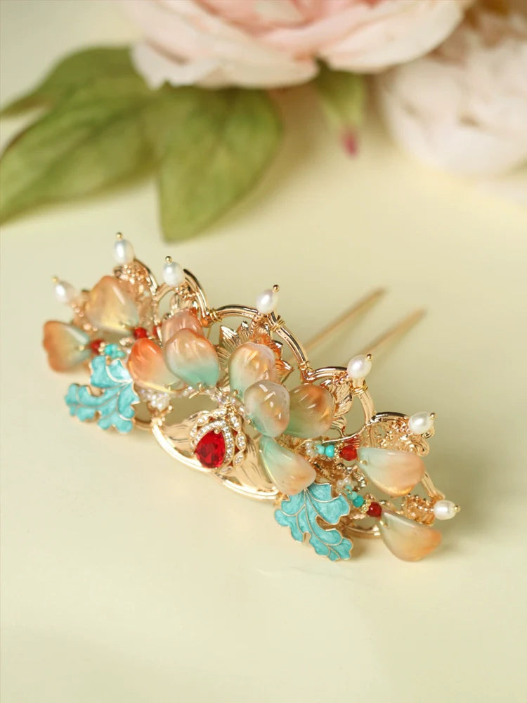 Hanfu hair accessories can vary widely in style, material, and design, but they all serve the purpose of enhancing the wearer's appearance and adding an extra touch of elegance to their hair. Some notable hair accessories commonly associated with Hanfu are hairpins (发簪, fāzān), hair combs (发篦, fābì), tassels (流苏, liúsū), hair ornaments (发髻, fājì), hairbands and headpieces (发饰, fāshì).