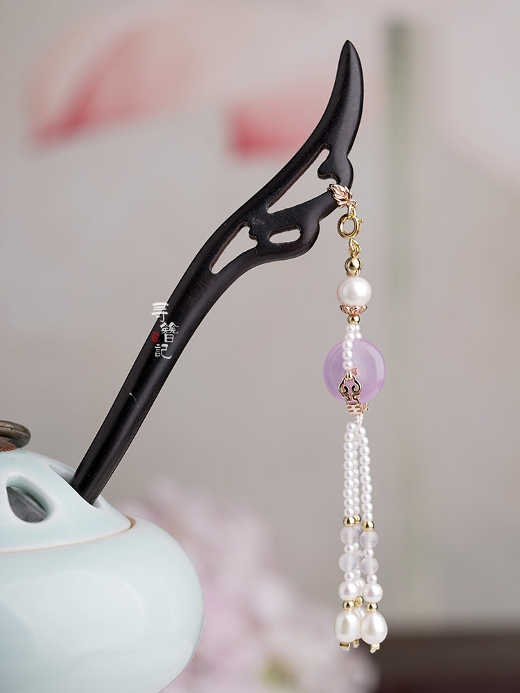 Hanfu hair accessories can vary widely in style, material, and design, but they all serve the purpose of enhancing the wearer's appearance and adding an extra touch of elegance to their hair. Some notable hair accessories commonly associated with Hanfu are hairpins (发簪, fāzān), hair combs (发篦, fābì), tassels (流苏, liúsū), hair ornaments (发髻, fājì), hairbands and headpieces (发饰, fāshì).