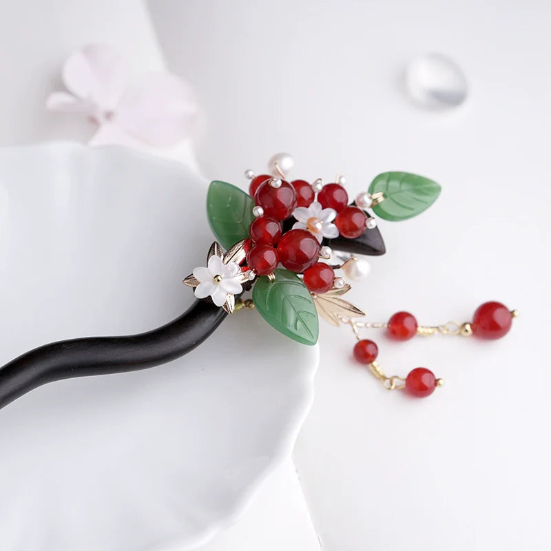 Hanfu hair accessories can vary widely in style, material, and design, but they all serve the purpose of enhancing the wearer's appearance and adding an extra touch of elegance to their hair. Some notable hair accessories commonly associated with Hanfu are hairpins (发簪, fāzān), hair combs (发篦, fābì), tassels (流苏, liúsū), hair ornaments (发髻, fājì), hairbands and headpieces (发饰, fāshì).