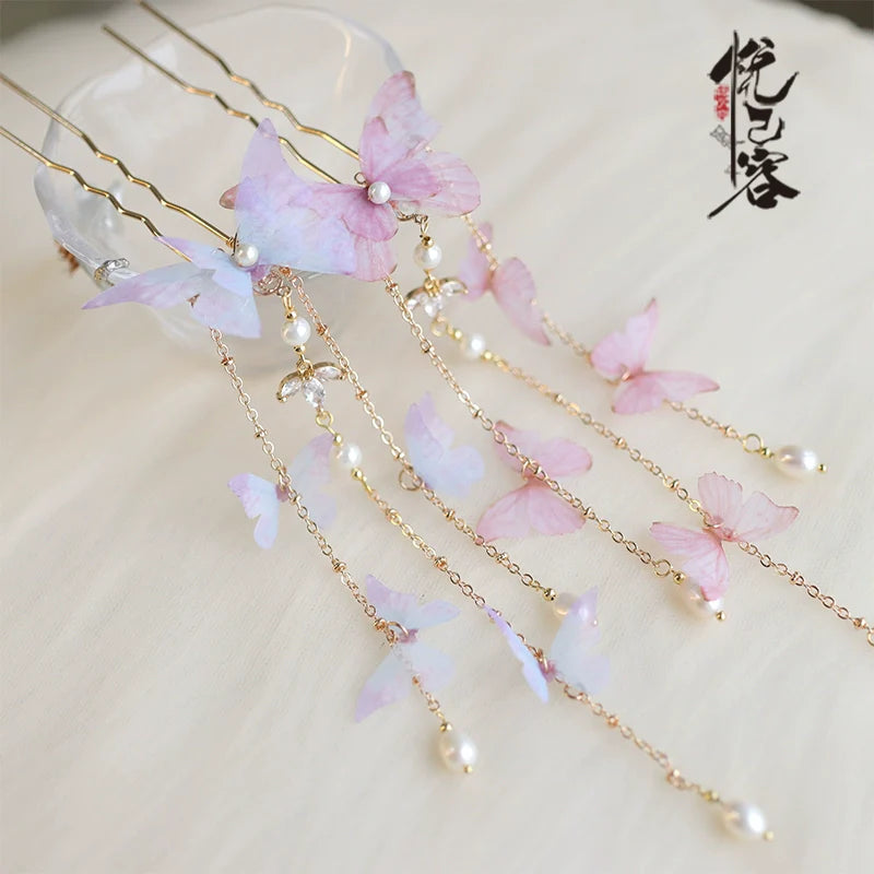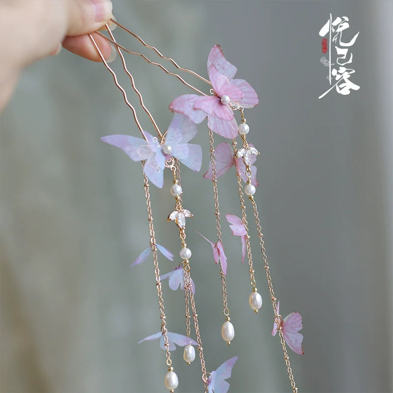 Hanfu hair accessories can vary widely in style, material, and design, but they all serve the purpose of enhancing the wearer's appearance and adding an extra touch of elegance to their hair. Some notable hair accessories commonly associated with Hanfu are hairpins (发簪, fāzān), hair combs (发篦, fābì), tassels (流苏, liúsū), hair ornaments (发髻, fājì), hairbands and headpieces (发饰, fāshì).