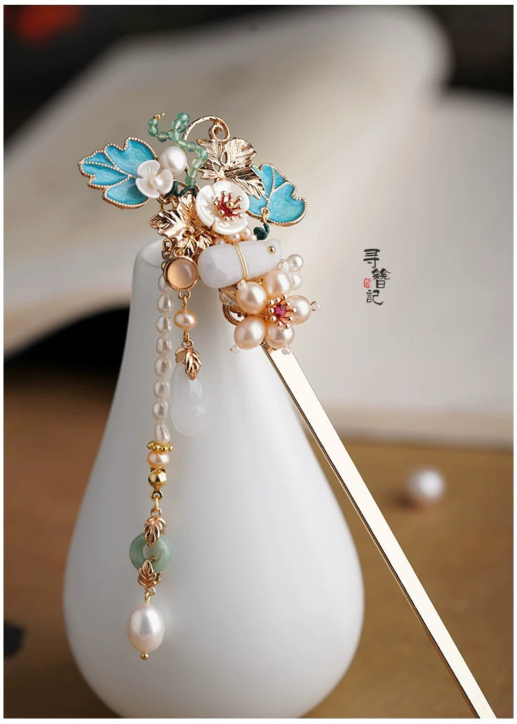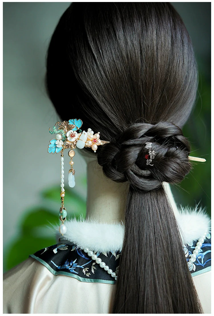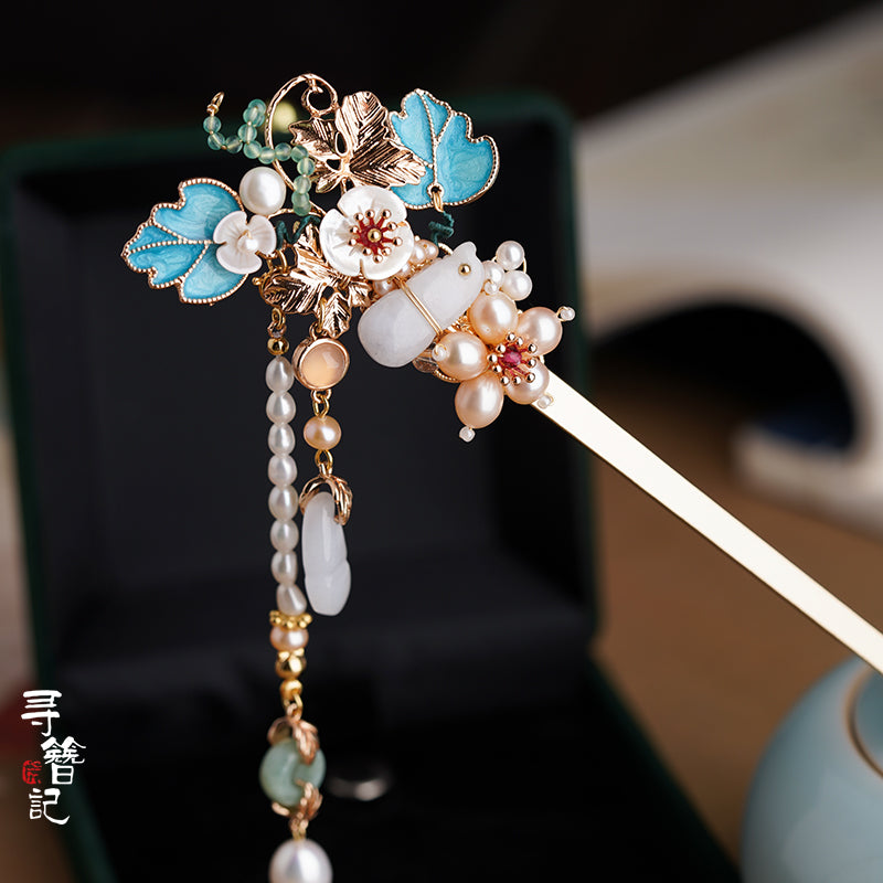 Hanfu hair accessories can vary widely in style, material, and design, but they all serve the purpose of enhancing the wearer's appearance and adding an extra touch of elegance to their hair. Some notable hair accessories commonly associated with Hanfu are hairpins (发簪, fāzān), hair combs (发篦, fābì), tassels (流苏, liúsū), hair ornaments (发髻, fājì), hairbands and headpieces (发饰, fāshì).