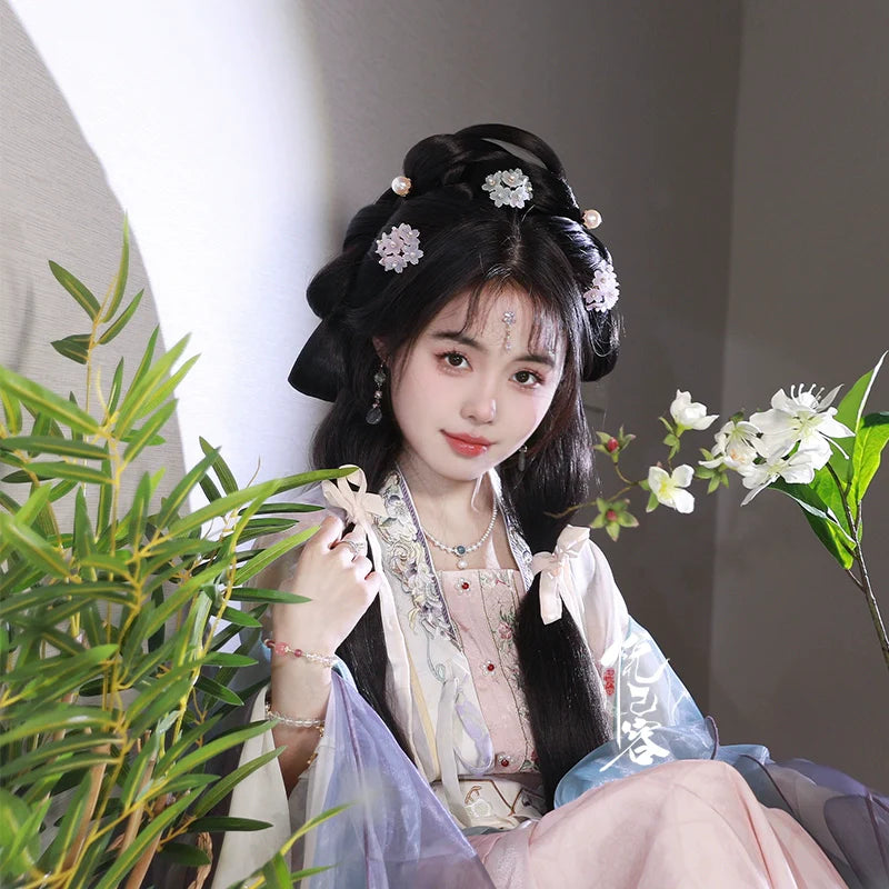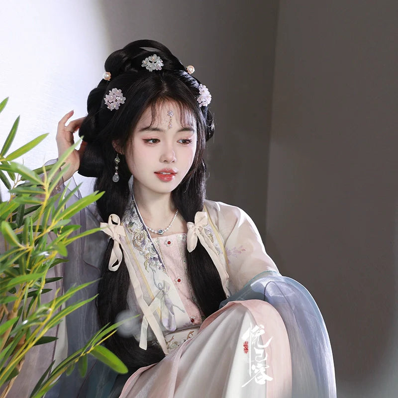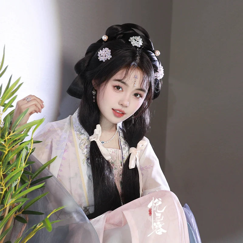 In traditional Hanfu culture, the hairstyle and the accompanying accessories are considered important elements that complete the overall look and reflect the wearer's social status, fashion sense, and personal style.