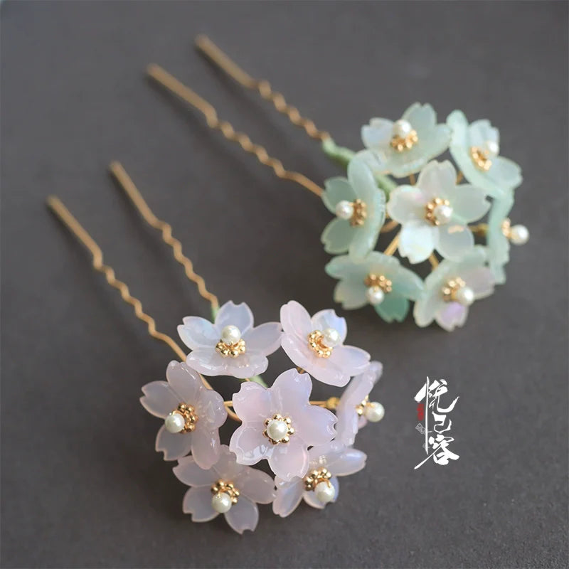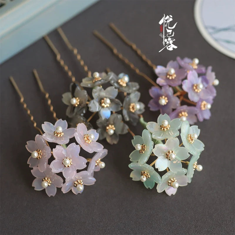 Hanfu hair accessories can vary widely in style, material, and design, but they all serve the purpose of enhancing the wearer's appearance and adding an extra touch of elegance to their hair. Some notable hair accessories commonly associated with Hanfu are hairpins (发簪, fāzān), hair combs (发篦, fābì), tassels (流苏, liúsū), hair ornaments (发髻, fājì), hairbands and headpieces (发饰, fāshì).