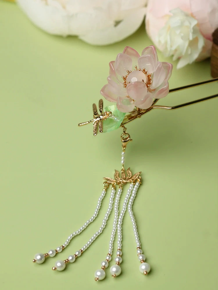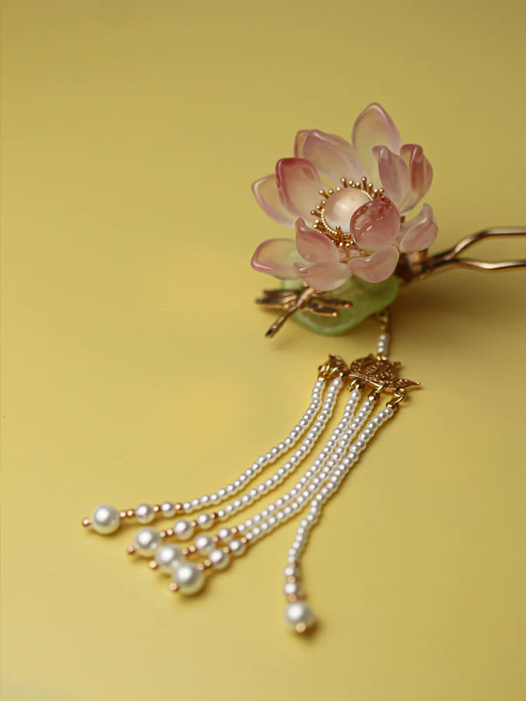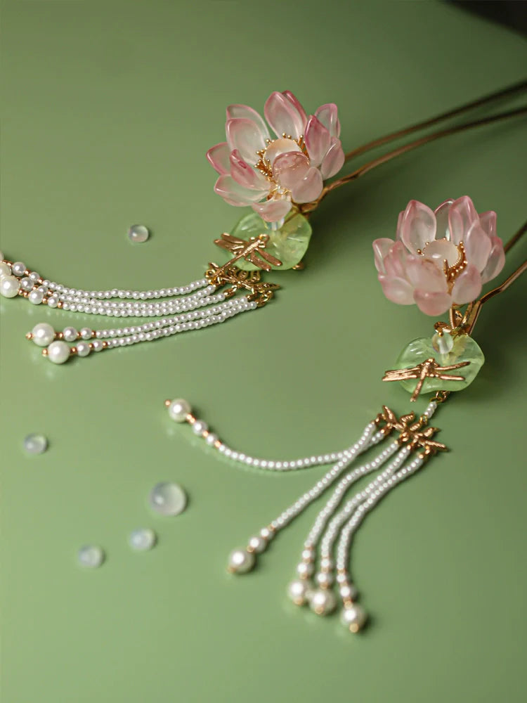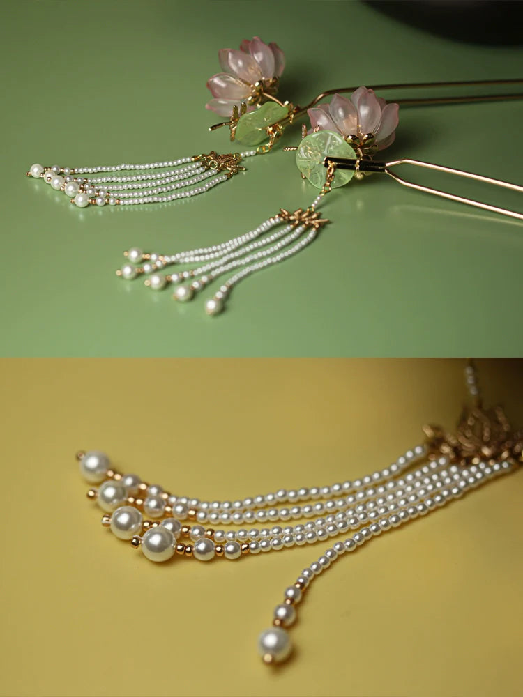 Hanfu hair accessories can vary widely in style, material, and design, but they all serve the purpose of enhancing the wearer's appearance and adding an extra touch of elegance to their hair. Some notable hair accessories commonly associated with Hanfu are hairpins (发簪, fāzān), hair combs (发篦, fābì), tassels (流苏, liúsū), hair ornaments (发髻, fājì), hairbands and headpieces (发饰, fāshì).