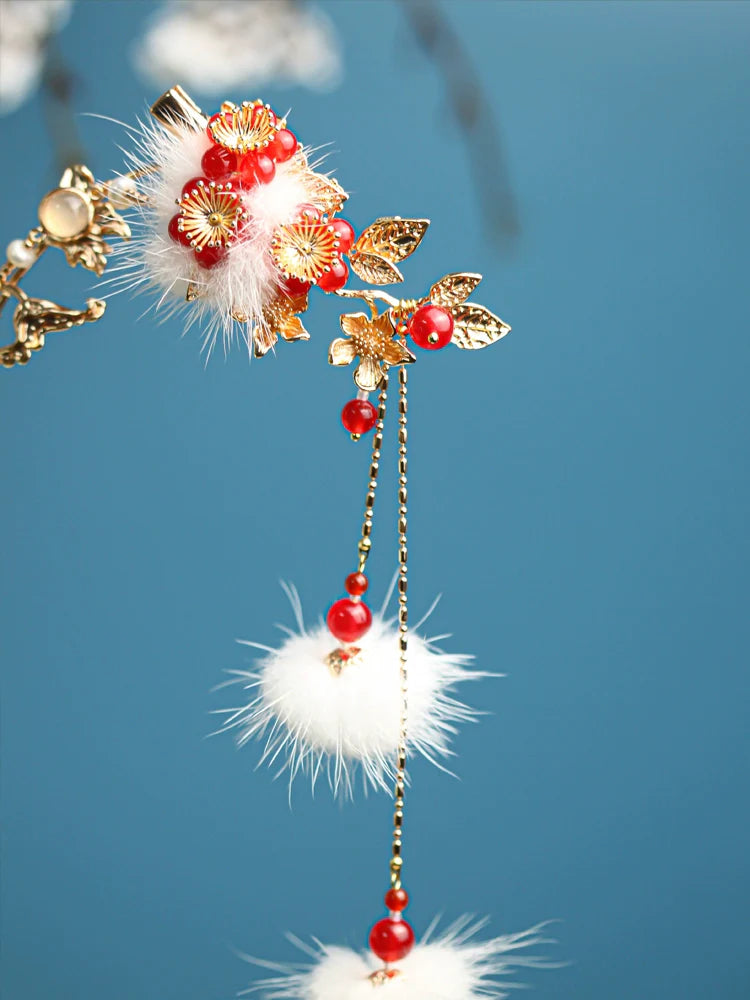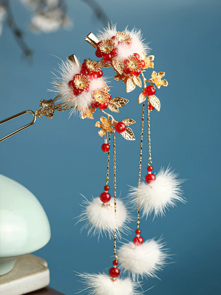 Hanfu hair accessories can vary widely in style, material, and design, but they all serve the purpose of enhancing the wearer's appearance and adding an extra touch of elegance to their hair. Some notable hair accessories commonly associated with Hanfu are hairpins (发簪, fāzān), hair combs (发篦, fābì), tassels (流苏, liúsū), hair ornaments (发髻, fājì), hairbands and headpieces (发饰, fāshì).