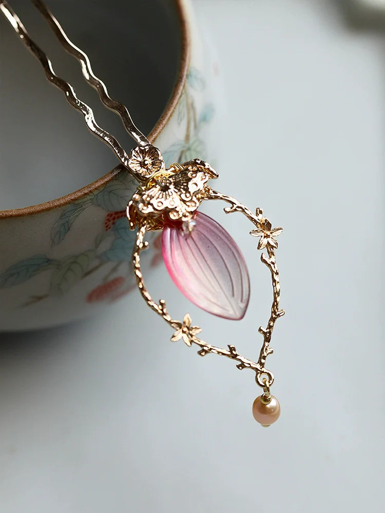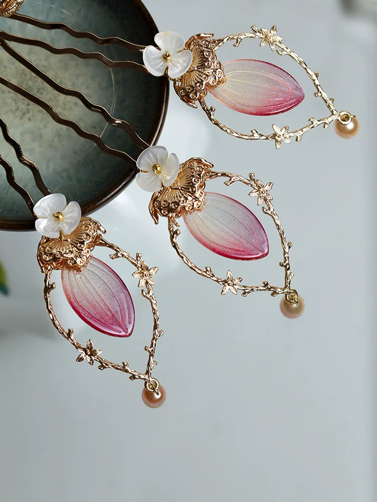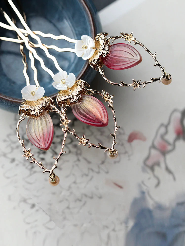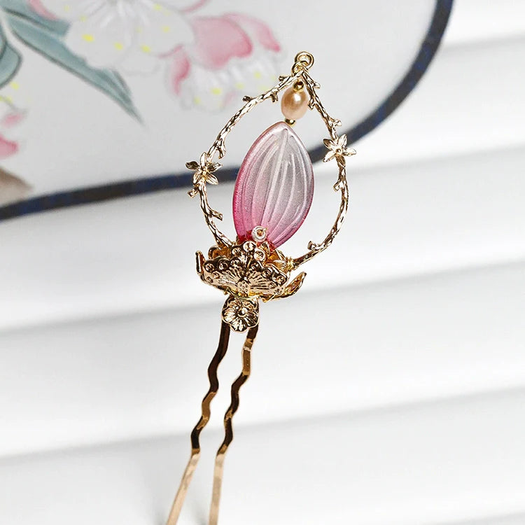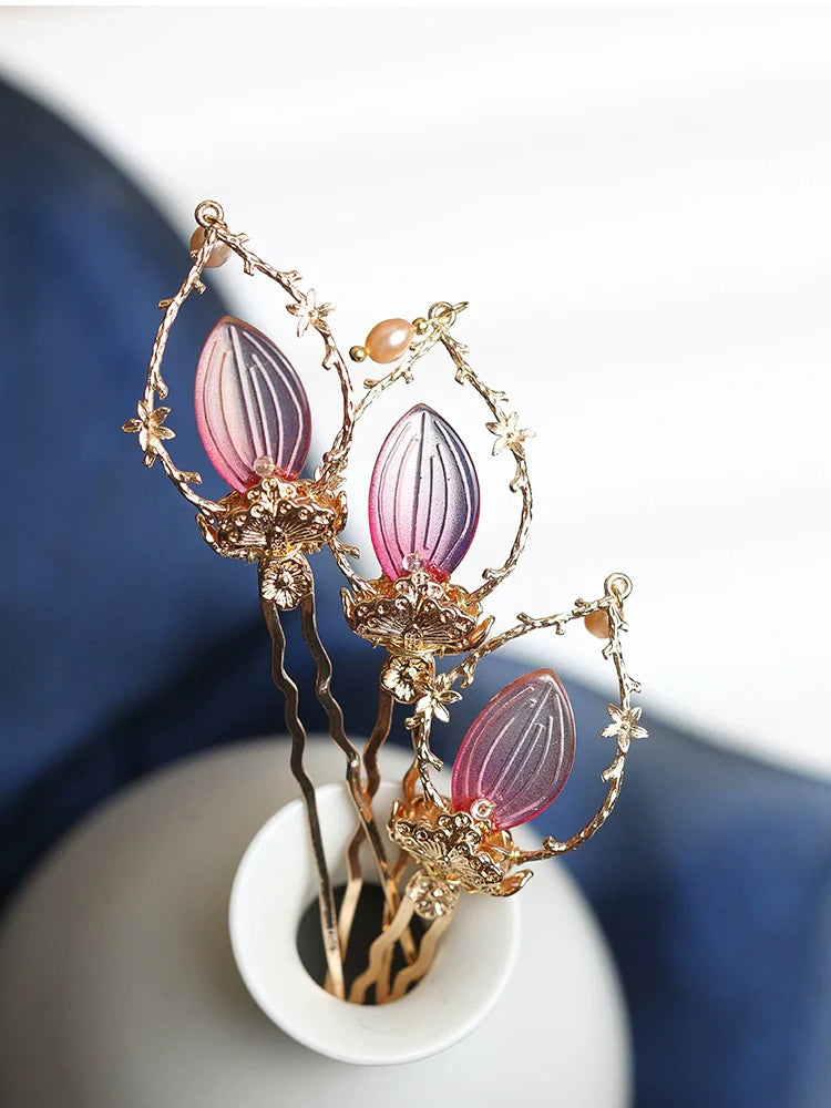 Hanfu hair accessories can vary widely in style, material, and design, but they all serve the purpose of enhancing the wearer's appearance and adding an extra touch of elegance to their hair. Some notable hair accessories commonly associated with Hanfu are hairpins (发簪, fāzān), hair combs (发篦, fābì), tassels (流苏, liúsū), hair ornaments (发髻, fājì), hairbands and headpieces (发饰, fāshì).