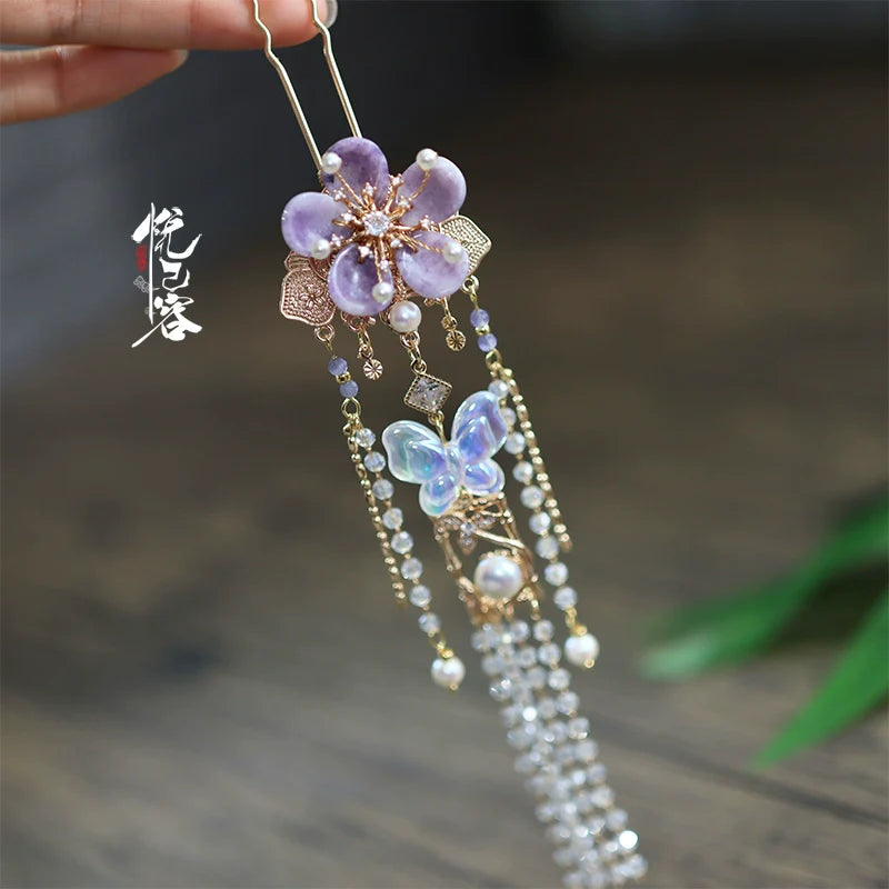 Hanfu hair accessories can vary widely in style, material, and design, but they all serve the purpose of enhancing the wearer's appearance and adding an extra touch of elegance to their hair. Some notable hair accessories commonly associated with Hanfu are hairpins (发簪, fāzān), hair combs (发篦, fābì), tassels (流苏, liúsū), hair ornaments (发髻, fājì), hairbands and headpieces (发饰, fāshì).