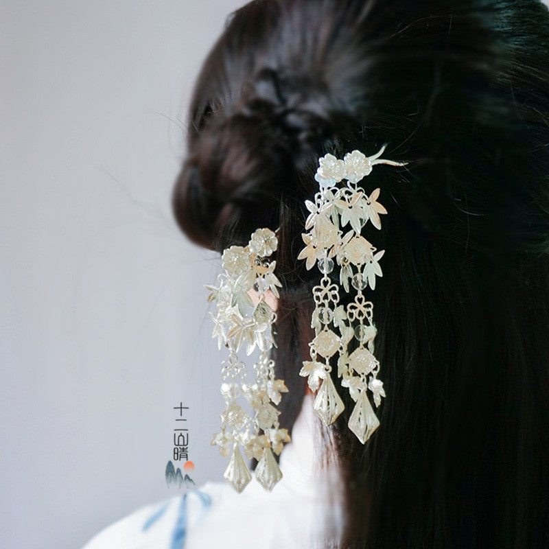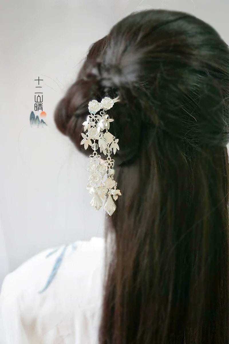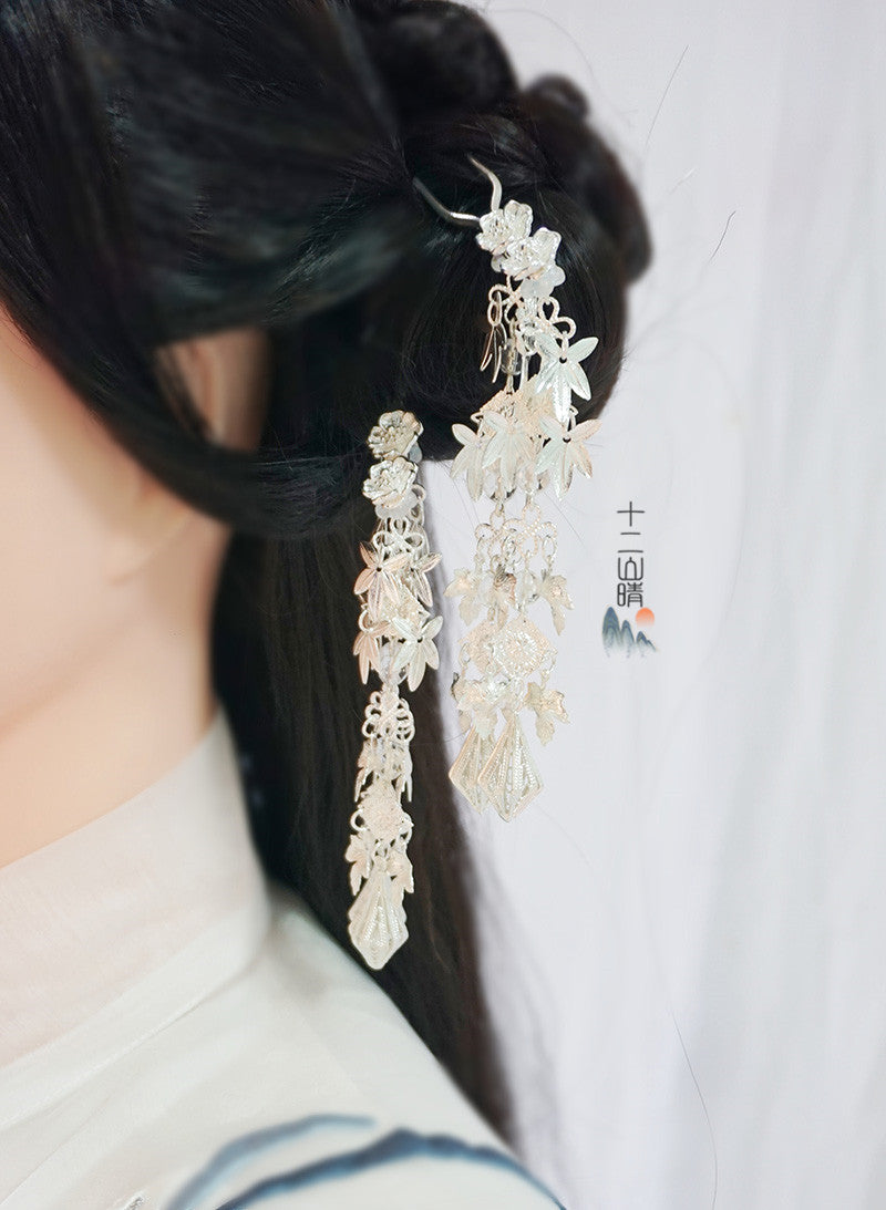 Hanfu hair accessories can vary widely in style, material, and design, but they all serve the purpose of enhancing the wearer's appearance and adding an extra touch of elegance to their hair. Some notable hair accessories commonly associated with Hanfu are hairpins (发簪, fāzān), hair combs (发篦, fābì), tassels (流苏, liúsū), hair ornaments (发髻, fājì), hairbands and headpieces (发饰, fāshì).