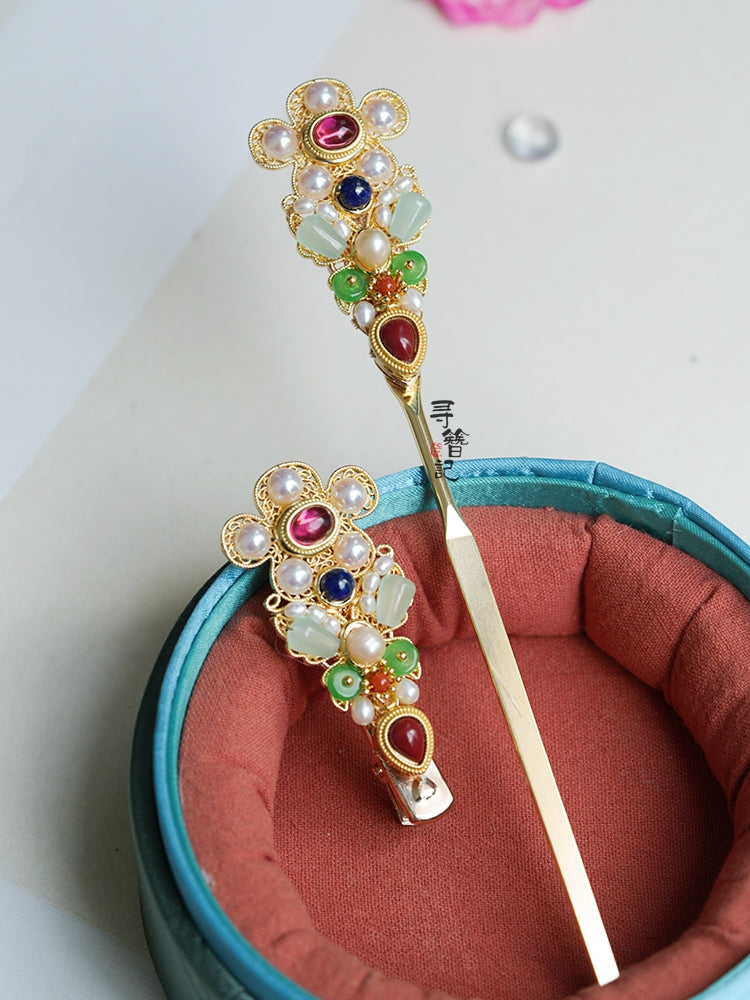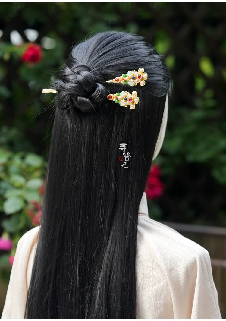 Hanfu hair accessories can vary widely in style, material, and design, but they all serve the purpose of enhancing the wearer's appearance and adding an extra touch of elegance to their hair. Some notable hair accessories commonly associated with Hanfu are hairpins (发簪, fāzān), hair combs (发篦, fābì), tassels (流苏, liúsū), hair ornaments (发髻, fājì), hairbands and headpieces (发饰, fāshì).