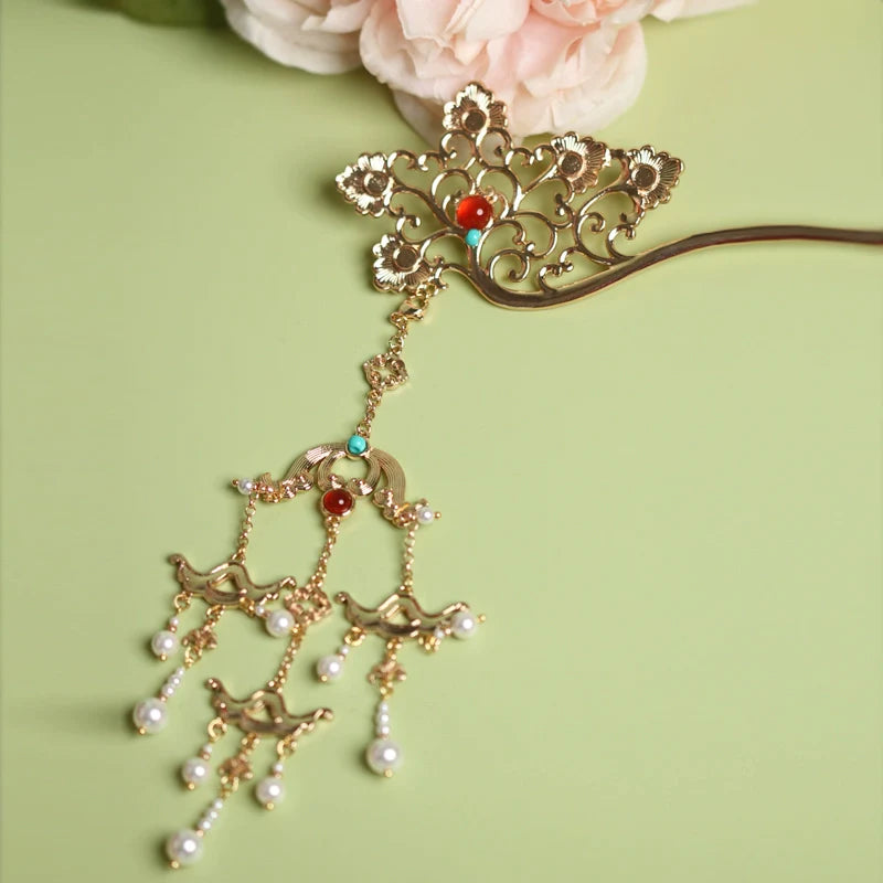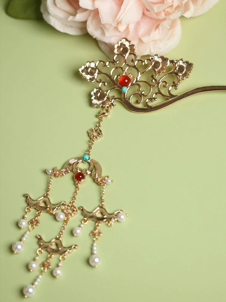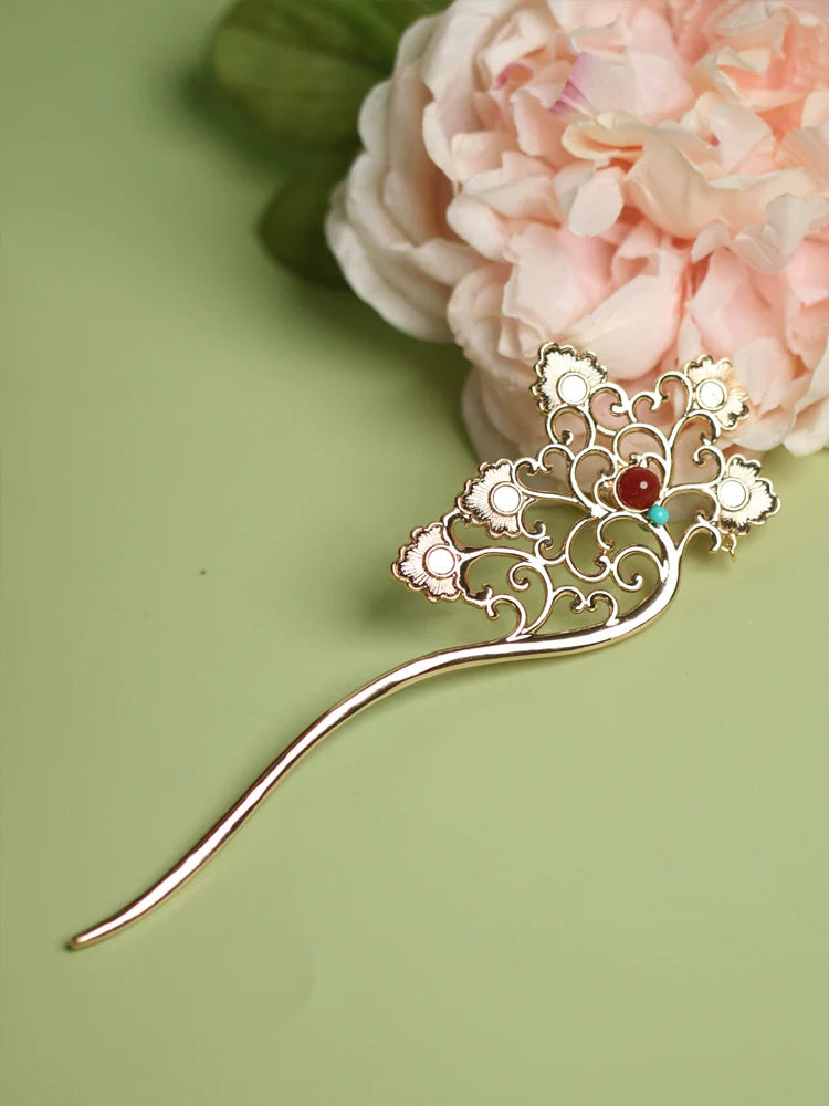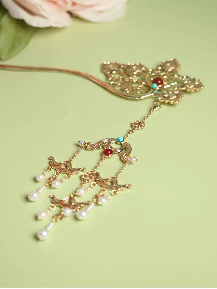 Hanfu hair accessories can vary widely in style, material, and design, but they all serve the purpose of enhancing the wearer's appearance and adding an extra touch of elegance to their hair. Some notable hair accessories commonly associated with Hanfu are hairpins (发簪, fāzān), hair combs (发篦, fābì), tassels (流苏, liúsū), hair ornaments (发髻, fājì), hairbands and headpieces (发饰, fāshì).