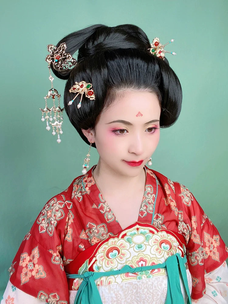 In traditional Hanfu culture, the hairstyle and the accompanying accessories are considered important elements that complete the overall look and reflect the wearer's social status, fashion sense, and personal style.
