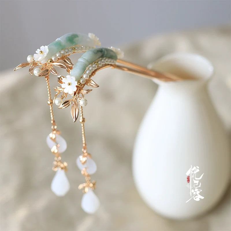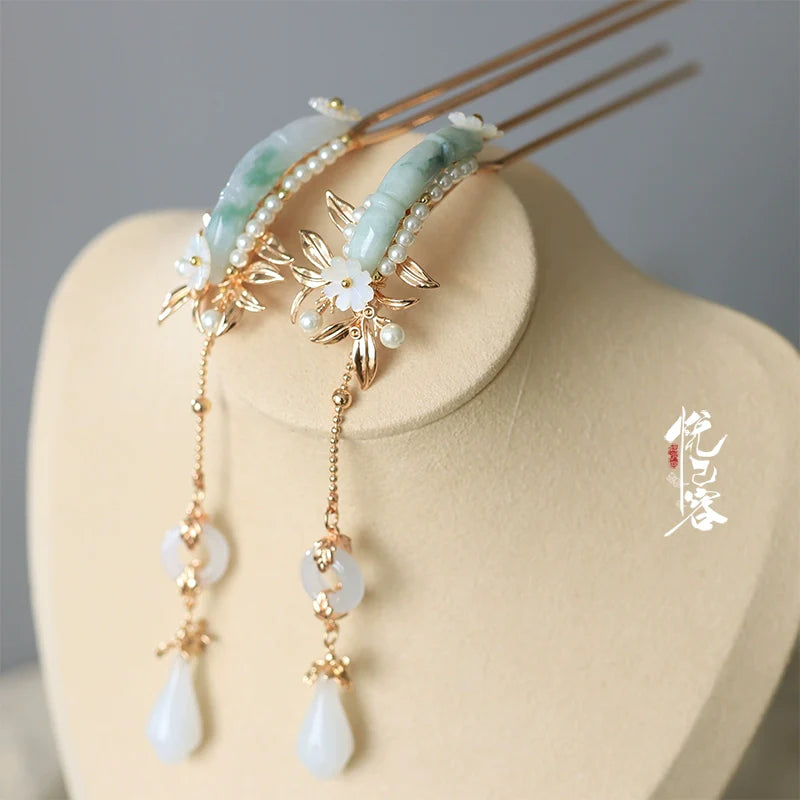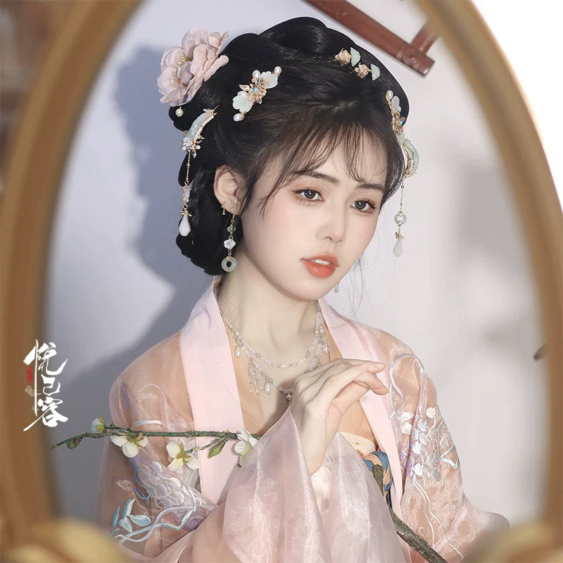 Hanfu hair accessories can vary widely in style, material, and design, but they all serve the purpose of enhancing the wearer's appearance and adding an extra touch of elegance to their hair. Some notable hair accessories commonly associated with Hanfu are hairpins (发簪, fāzān), hair combs (发篦, fābì), tassels (流苏, liúsū), hair ornaments (发髻, fājì), hairbands and headpieces (发饰, fāshì).
