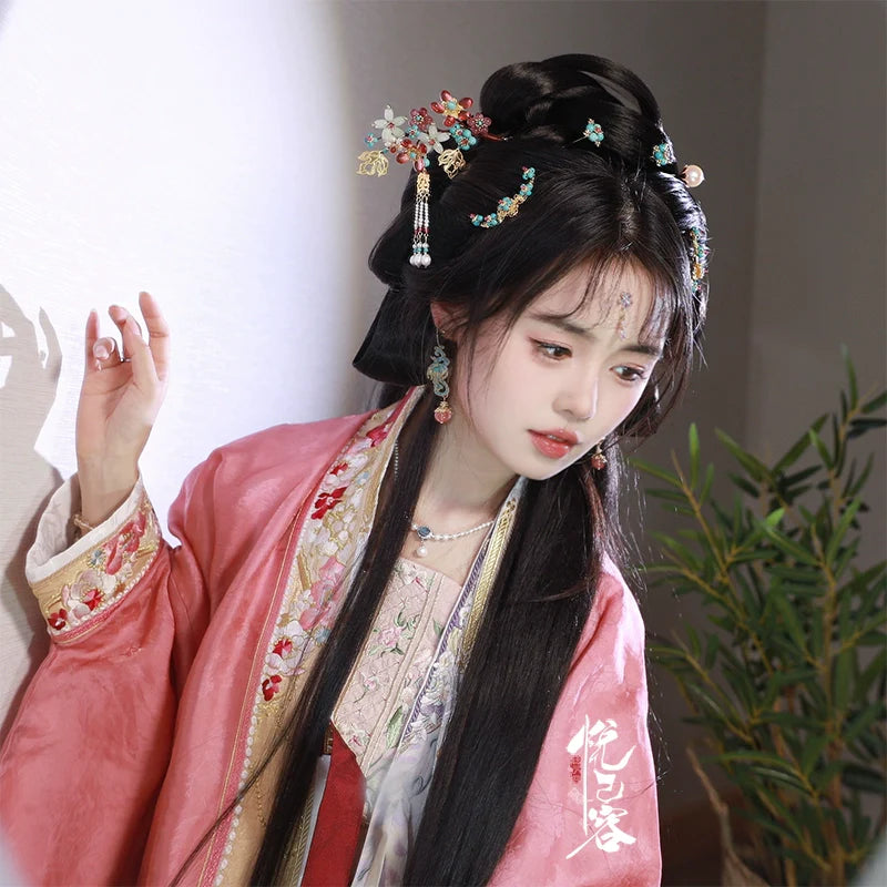 Hanfu hair accessories can vary widely in style, material, and design, but they all serve the purpose of enhancing the wearer's appearance and adding an extra touch of elegance to their hair. Some notable hair accessories commonly associated with Hanfu are hairpins (发簪, fāzān), hair combs (发篦, fābì), tassels (流苏, liúsū), hair ornaments (发髻, fājì), hairbands and headpieces (发饰, fāshì).