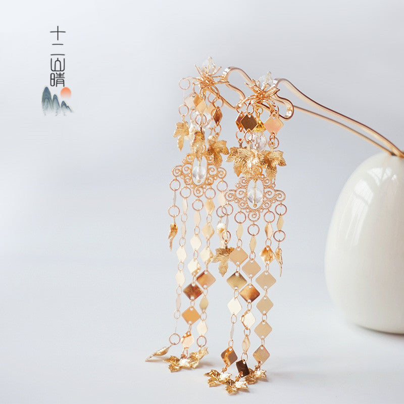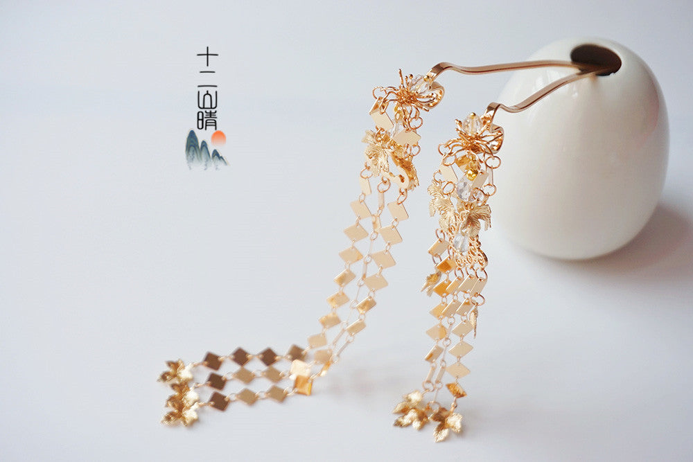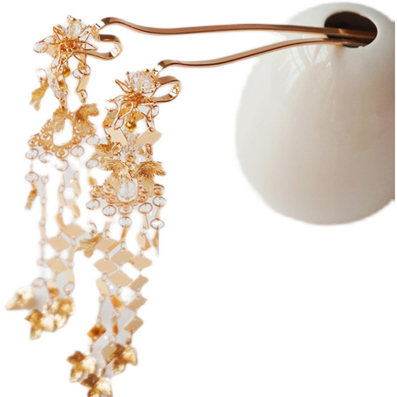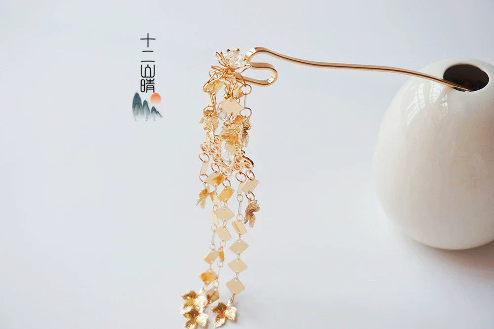 Hanfu hair accessories can vary widely in style, material, and design, but they all serve the purpose of enhancing the wearer's appearance and adding an extra touch of elegance to their hair. Some notable hair accessories commonly associated with Hanfu are hairpins (发簪, fāzān), hair combs (发篦, fābì), tassels (流苏, liúsū), hair ornaments (发髻, fājì), hairbands and headpieces (发饰, fāshì).