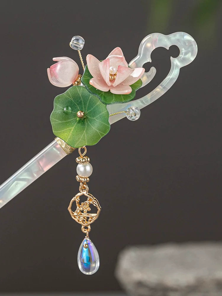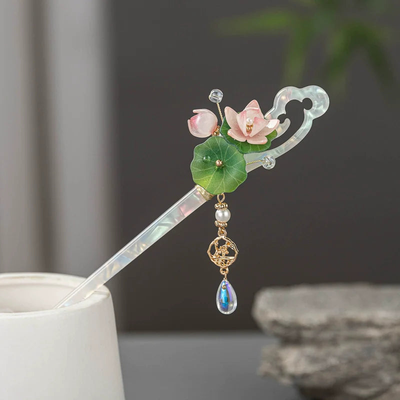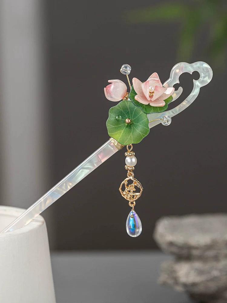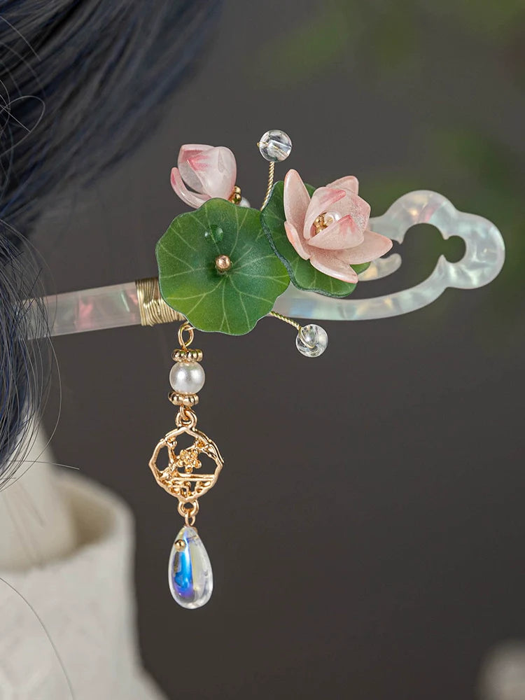 Hanfu hair accessories can vary widely in style, material, and design, but they all serve the purpose of enhancing the wearer's appearance and adding an extra touch of elegance to their hair. Some notable hair accessories commonly associated with Hanfu are hairpins (发簪, fāzān), hair combs (发篦, fābì), tassels (流苏, liúsū), hair ornaments (发髻, fājì), hairbands and headpieces (发饰, fāshì).